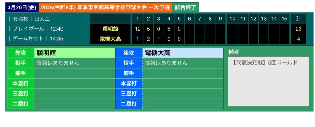 令和8年度春季東京都高等学校野球大会一次予選ブロック1回戦結果