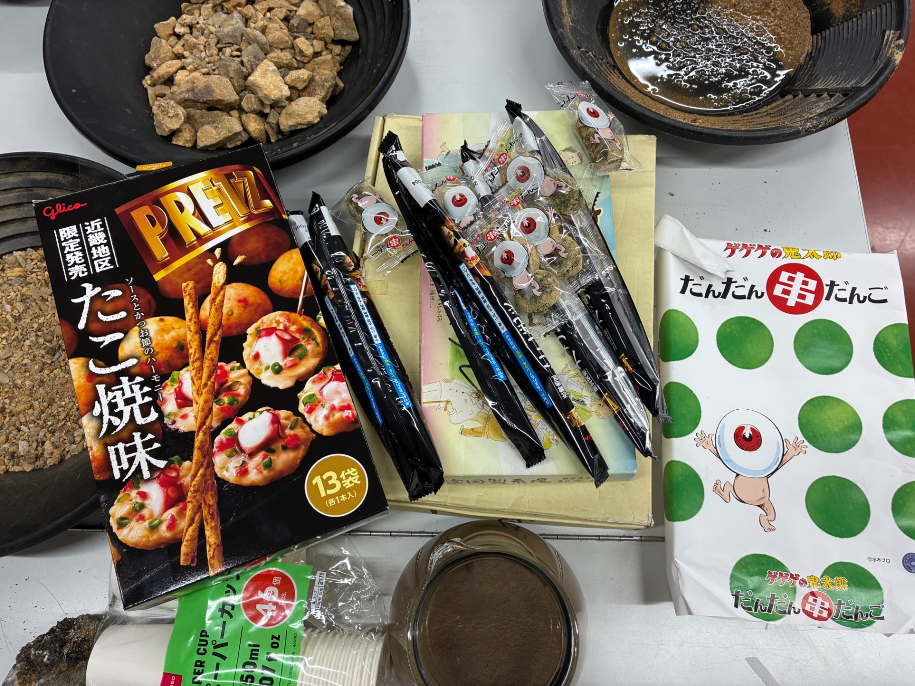 鉱物を割って観察した後、卒業生から差し入れされたお菓子をみんなで食べました。