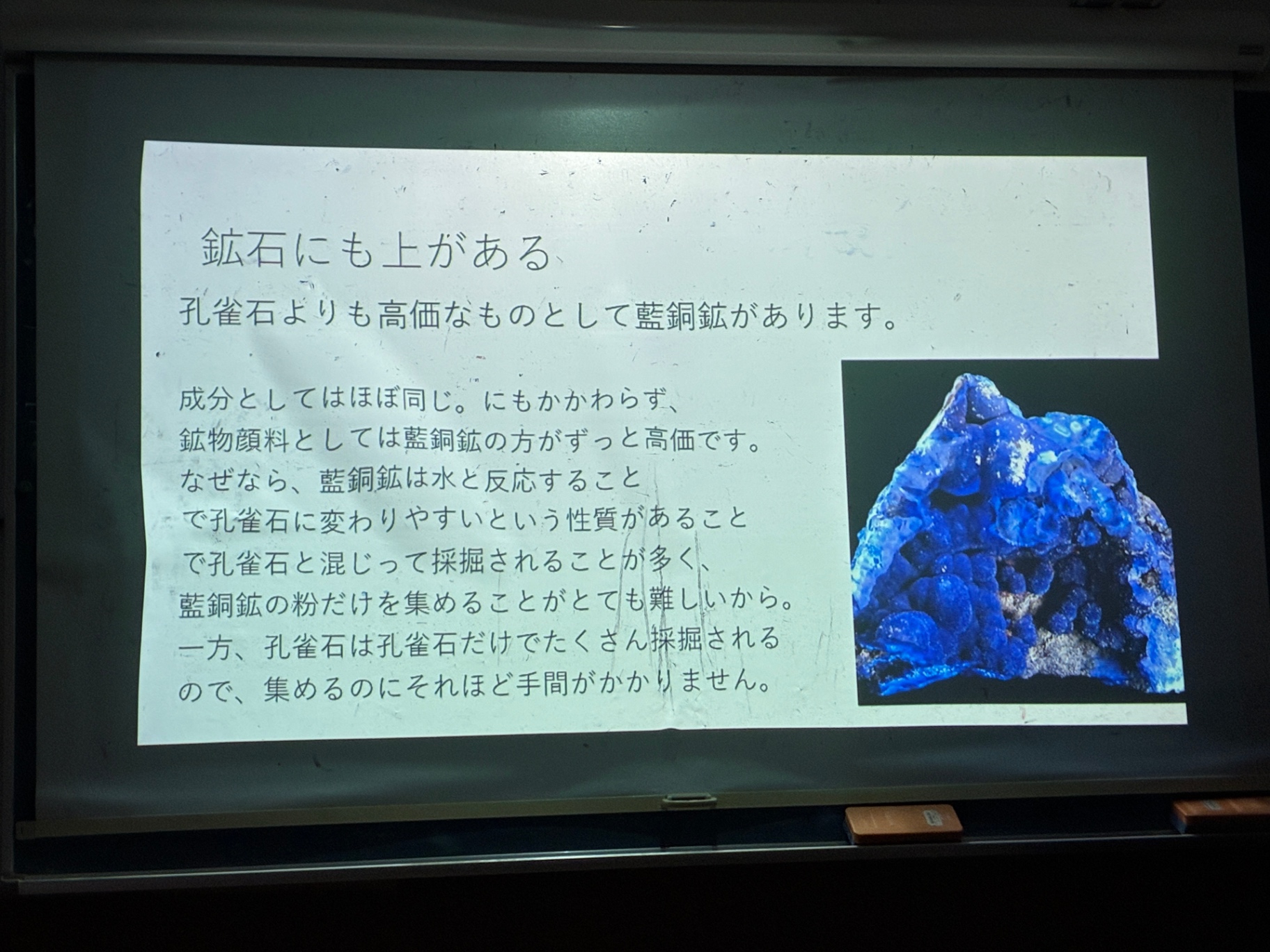 2月に研究発表会をしました。ラジウムなど放射線鉱物の研究とマントル構成物質の研究、孔雀石の研究発表があり、時間の関係などで後半は新年度に行うことになりました。