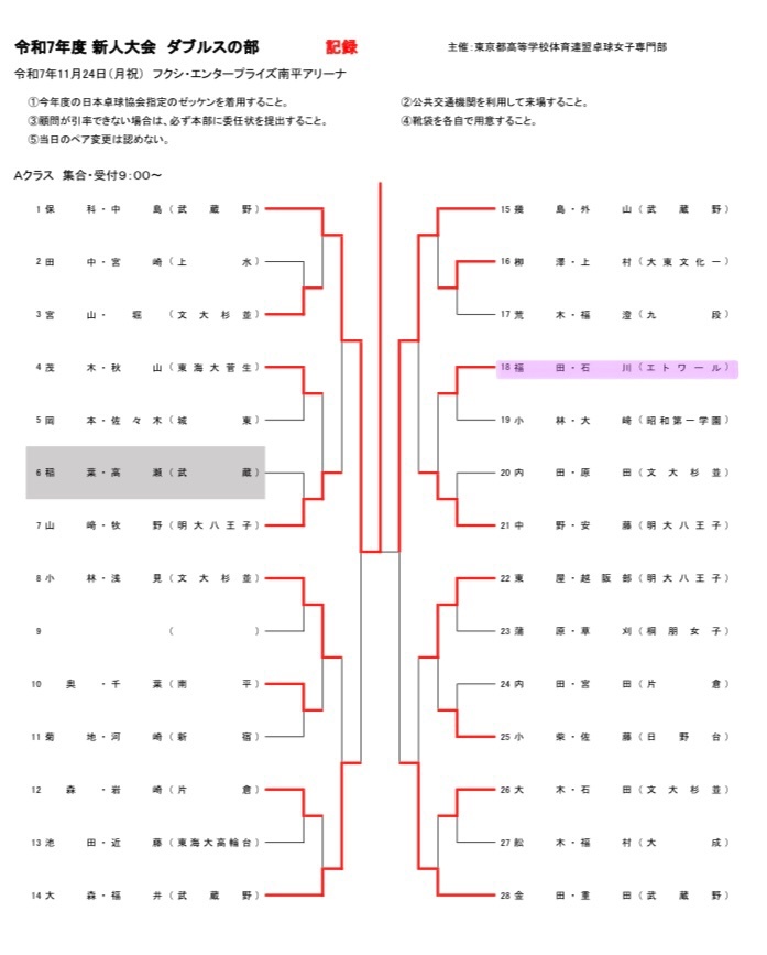 東京都新人卓球大会兼関東高等学校卓球大会予選会第8位