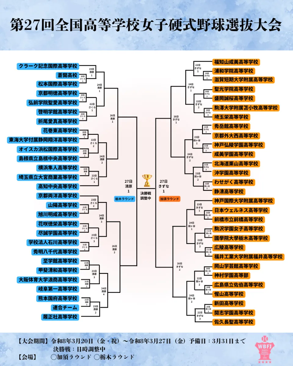 第27回全国高等学校女子硬式野球選抜大会組合せ決定‼️