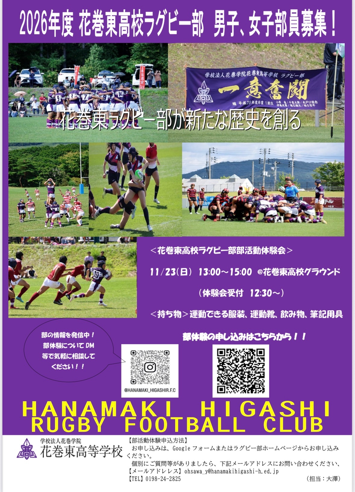 11/23(日)部活動体験の申し込みはこちらから🏉