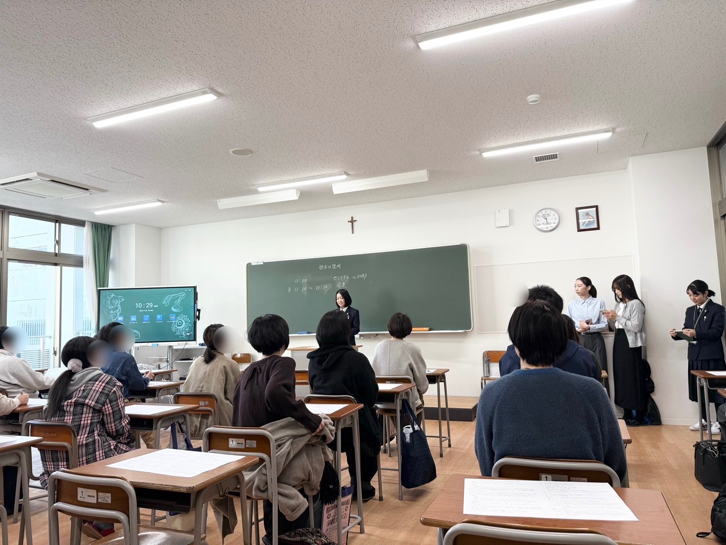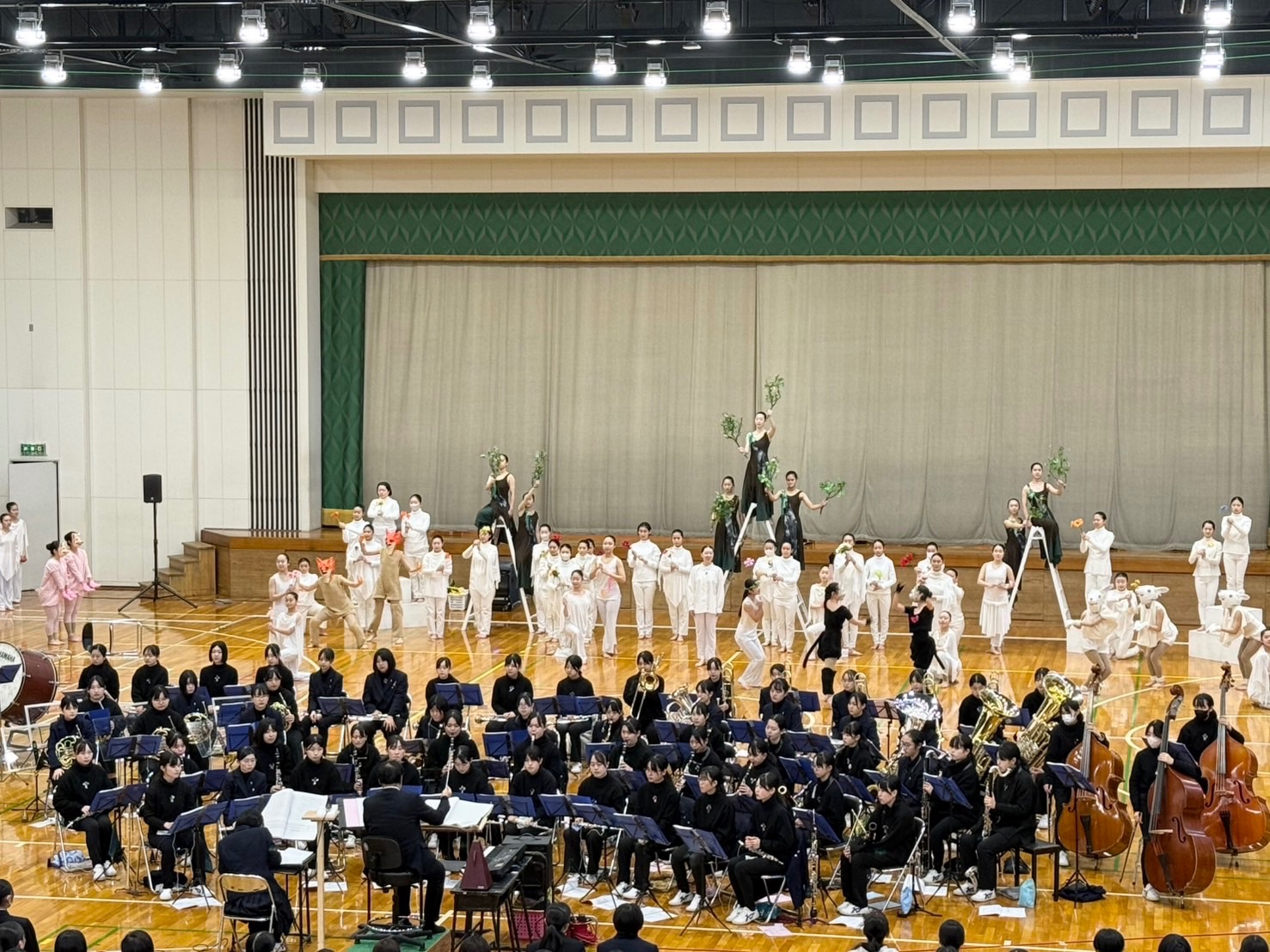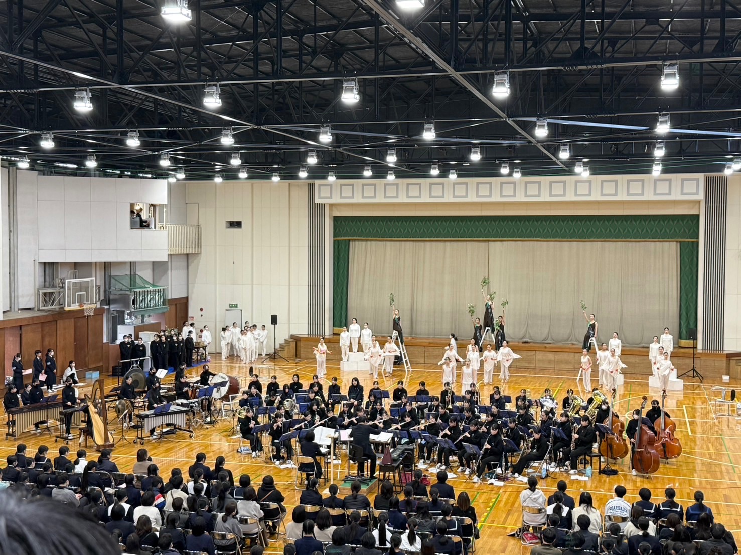 今日の見学会約400名の中学生、保護者の参加、約50名の体験入部参加ありました。ウェルカムステージではページェントリハーサルをみていただきました。
