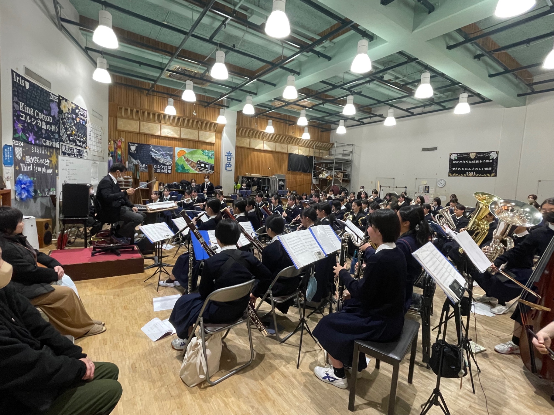 今日は学校のミニ見学会が午前中、午後からページェント合同練習でした。約100名の中学生、中学生保護者が来校され、吹奏楽には計20名の中学生、保護者の方がページェントの合奏を体験、見学されました。ありがとうございました。