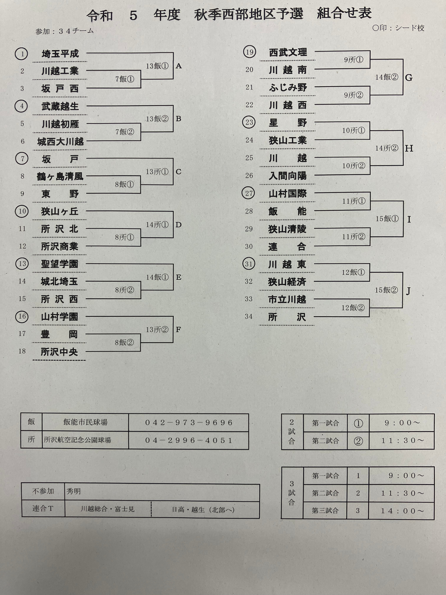 秋季埼玉県大会 西部地区予選 代表校決定戦