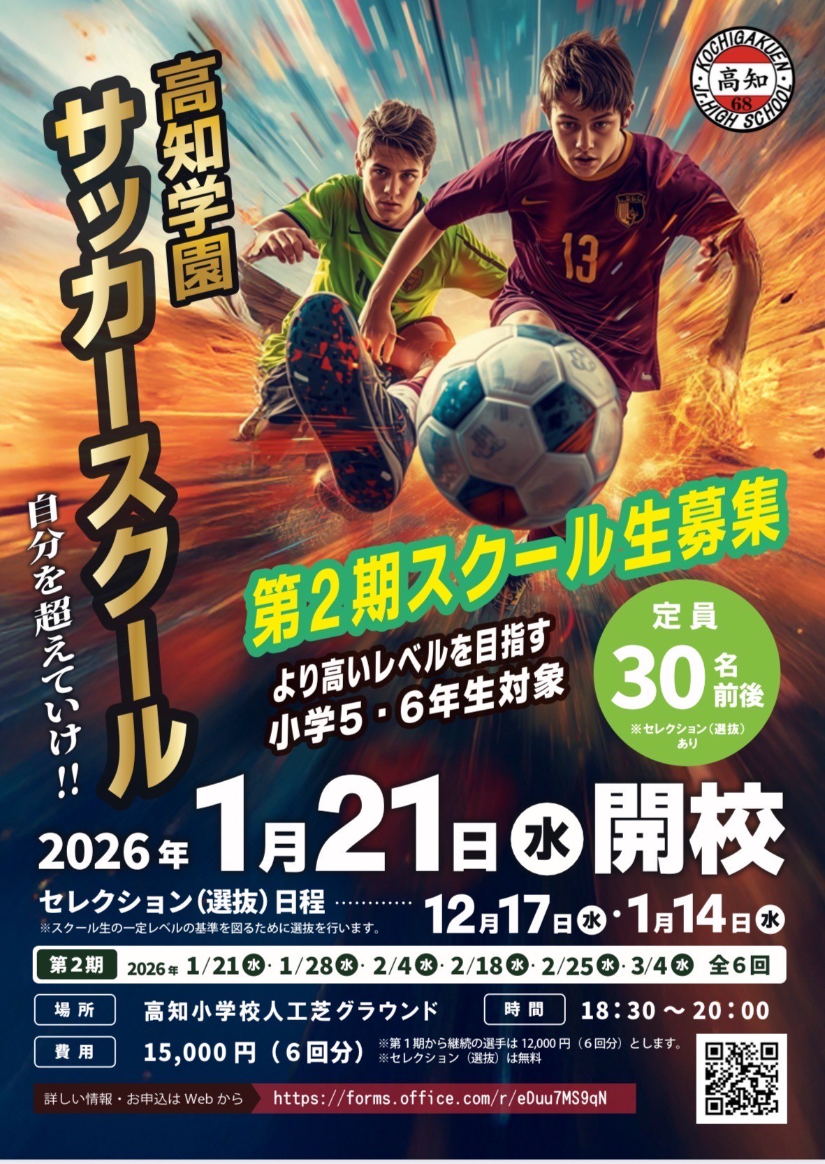 ⚽️高知学園サッカースクール(第2弾)の案内⚽️
