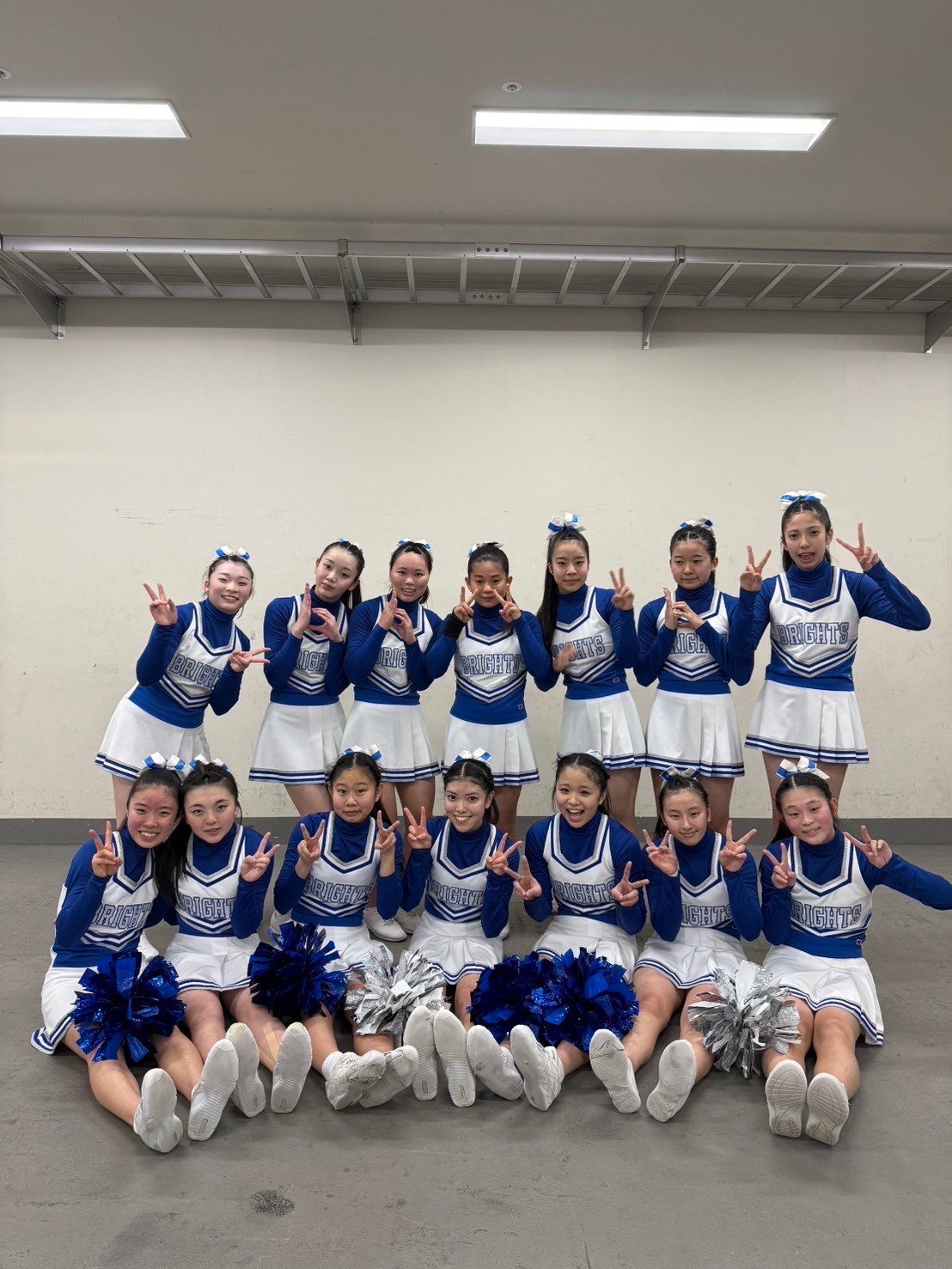 日頃の練習の成果を発表する機会として、日本チアリーディング協会の主催する各競技会や東京都高体連が主催する大会に出場しています。6月には「東京都総体チアリーディング大会」、「関東選手権大会」、8月に「JAPAN CUP」、1月に「全日本高等学校選手権大会」に出場をしています。各大会では、予選を突破して準決勝・決勝に進出することを目標としています。最近では、2022年1月の「第32回全日本高等学校チアリーディング選手権大会」では、全国8位入賞をはたしました。2023年1月の「第33回全日本高等学校チアリーディング選手権大会」では、予選を8位で突破し決勝に進出しました。2024年8月の「JAPAN CUP2024」では、フライデートーナメントを勝ち抜き、初の準決勝に進出しました。準決勝では、過去のチーム最高得点を大幅に更新しました。(大会演技などはギャラリーをごらんください)BRIGHTSのチームカラーは、「Blue&White」です。大会でのカラーアピールの時には、「ブルー」「ホワイト」の応援をお願いします!!