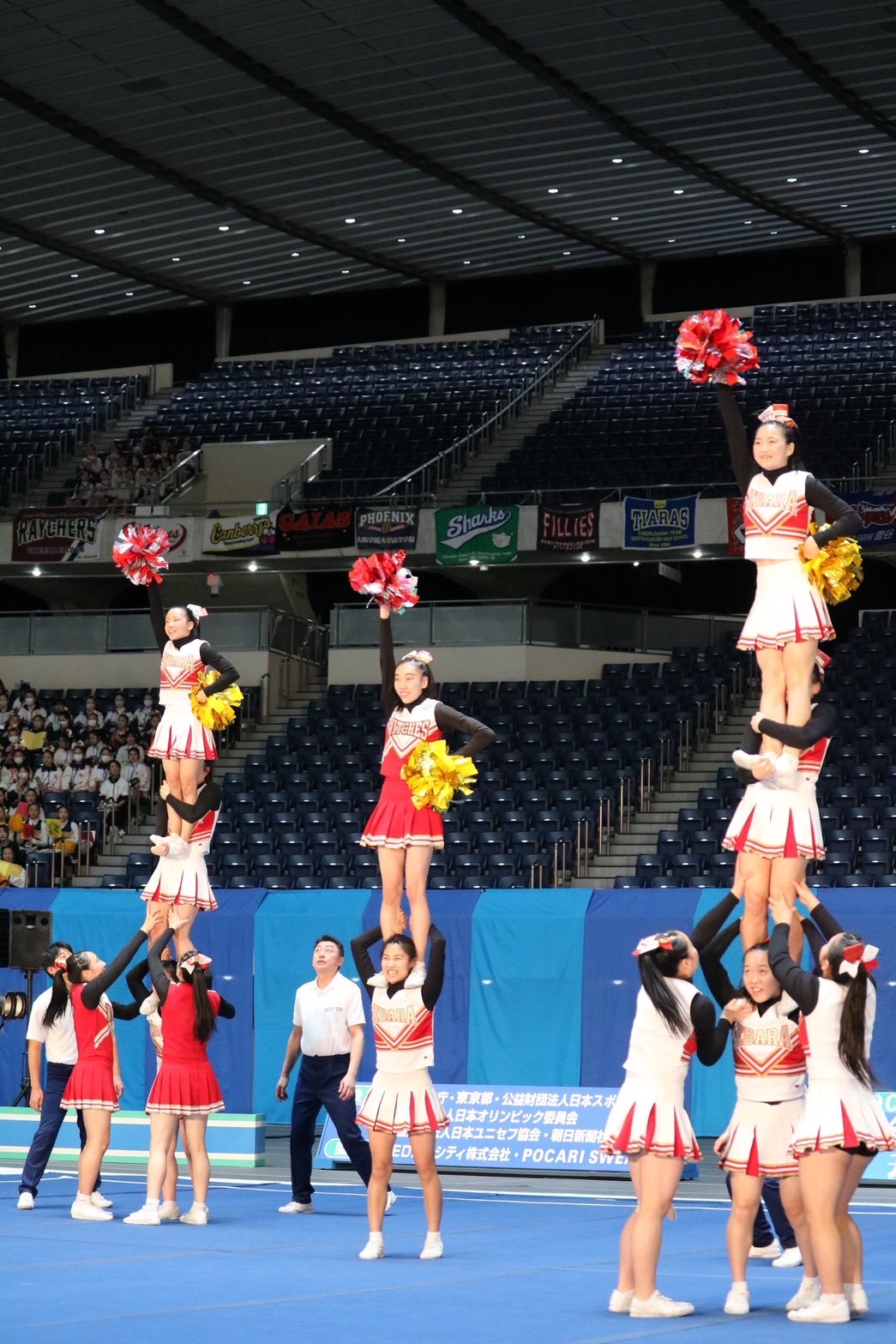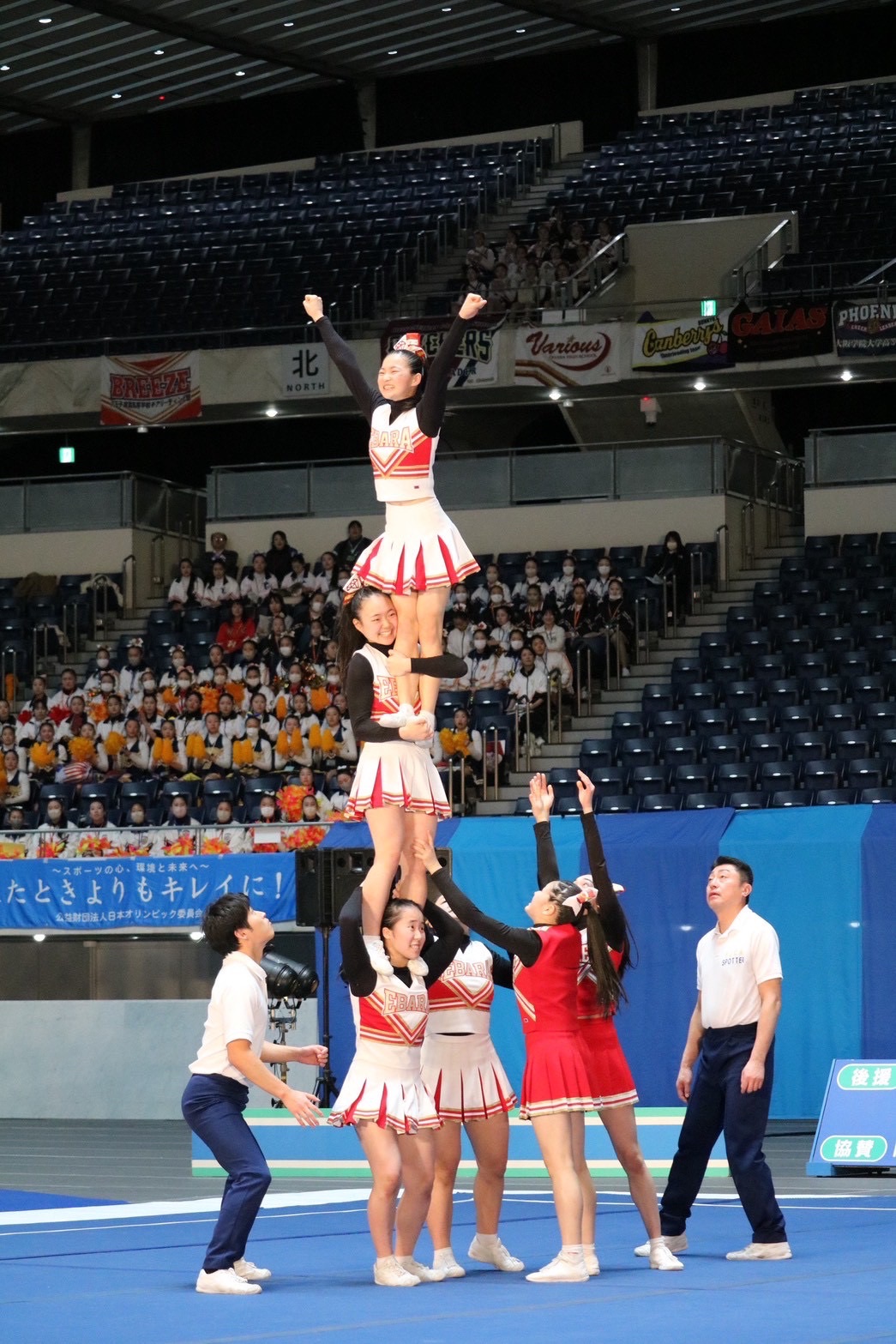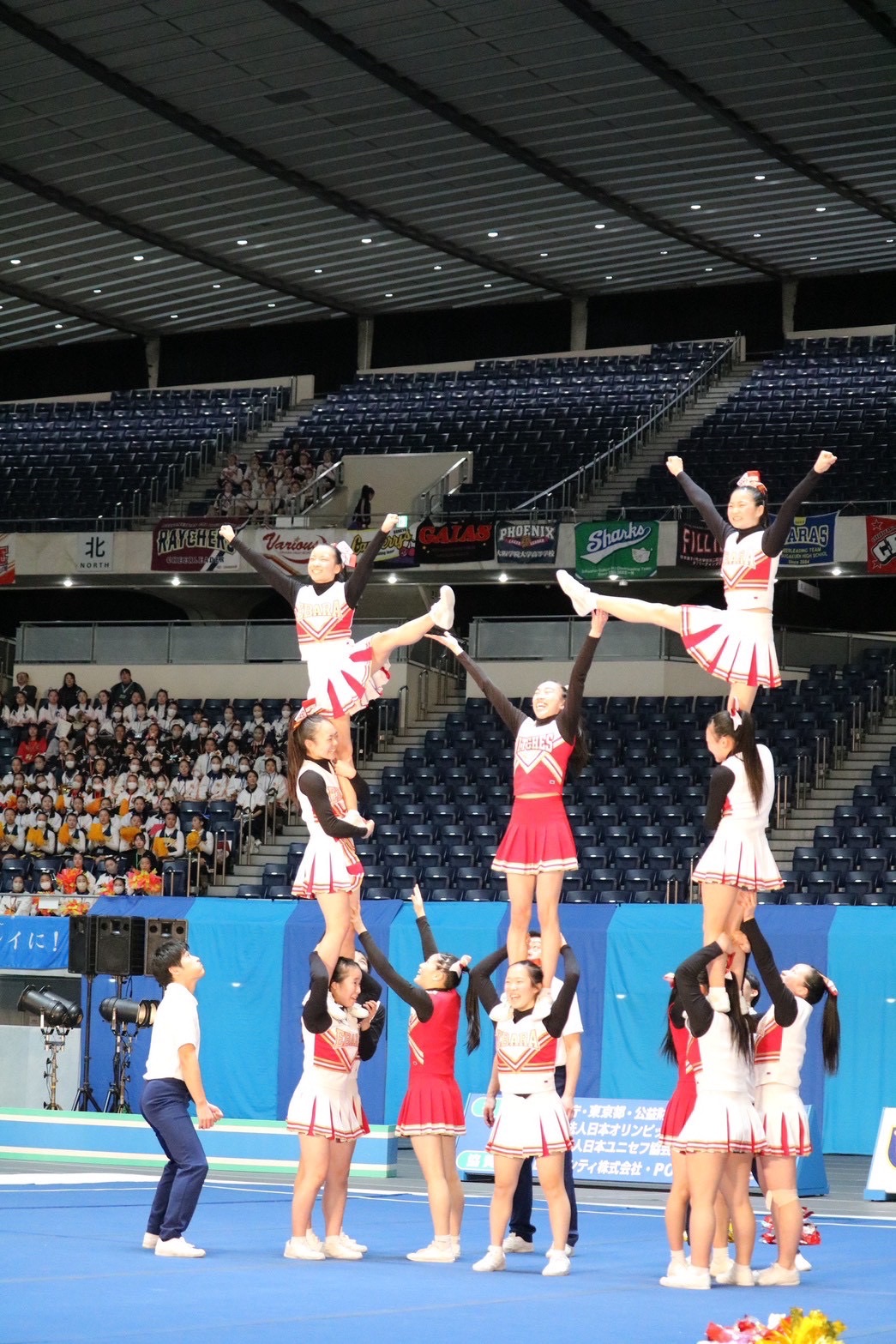 1月24日、25日に行われた第35回全日本高等学校チアリーディング選手権大会に出場しました!!今大会は日本体育大学荏原高等学校と合同チームを組ませていただき出場しました!予選では5位通過し、決勝ではノーミスの演技を出し全体15位となりました。応援ありがとうございました!(ユニホーム赤:駒場学園 ユニホーム白:日本体育大学荏原)