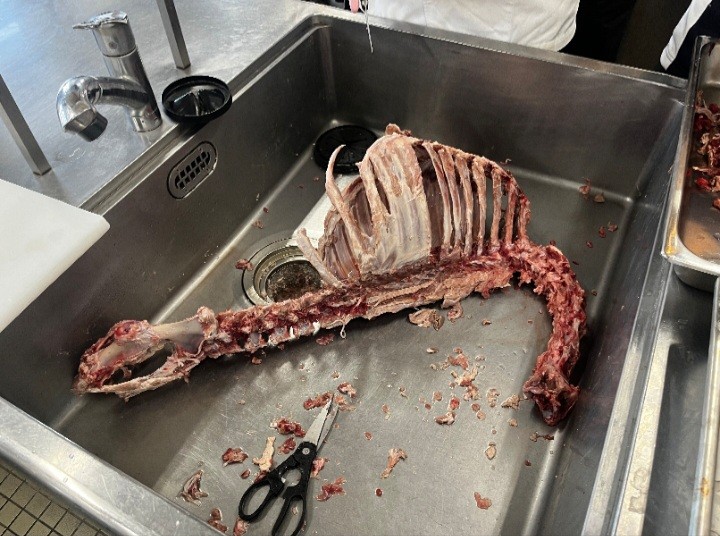 作業に入ります。まずあまりにも大きいので骨の周りの有機物を切る作業を3時間。次は薬品に浸けます。終わりが見えません。(後に予感は的中することに…😭)