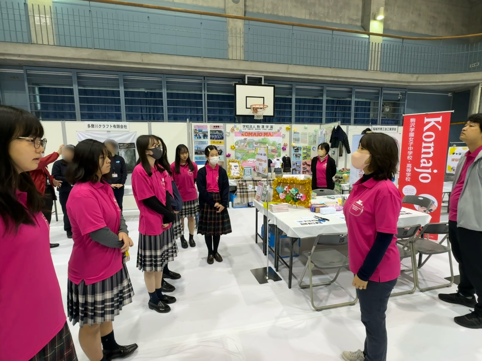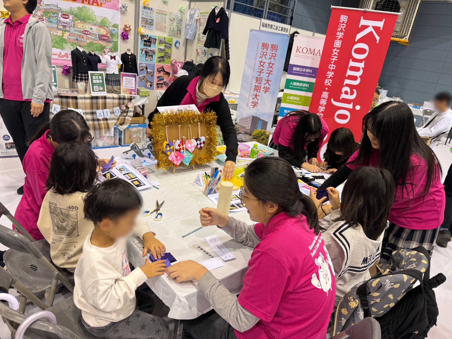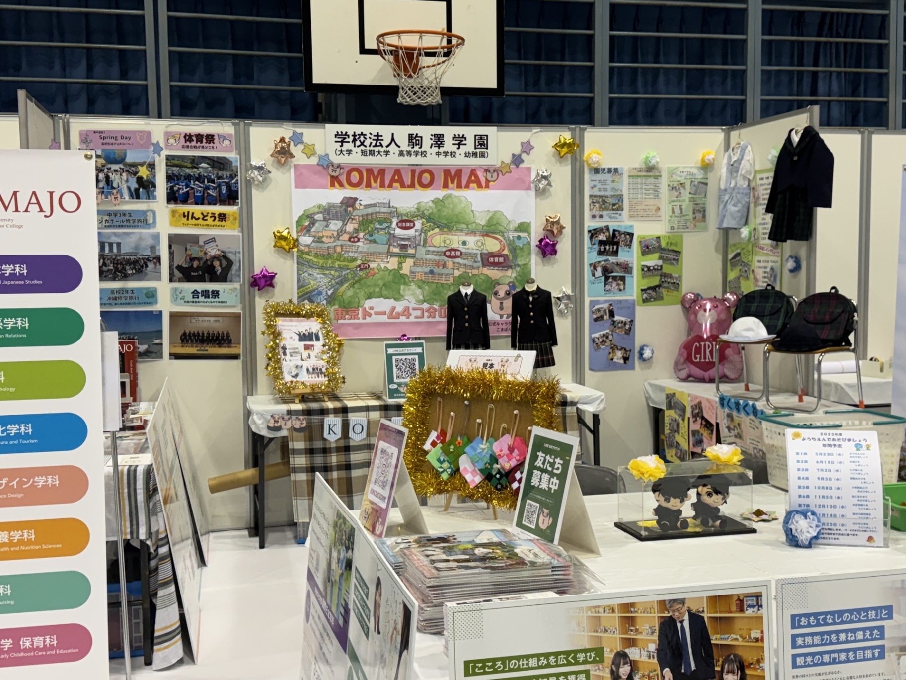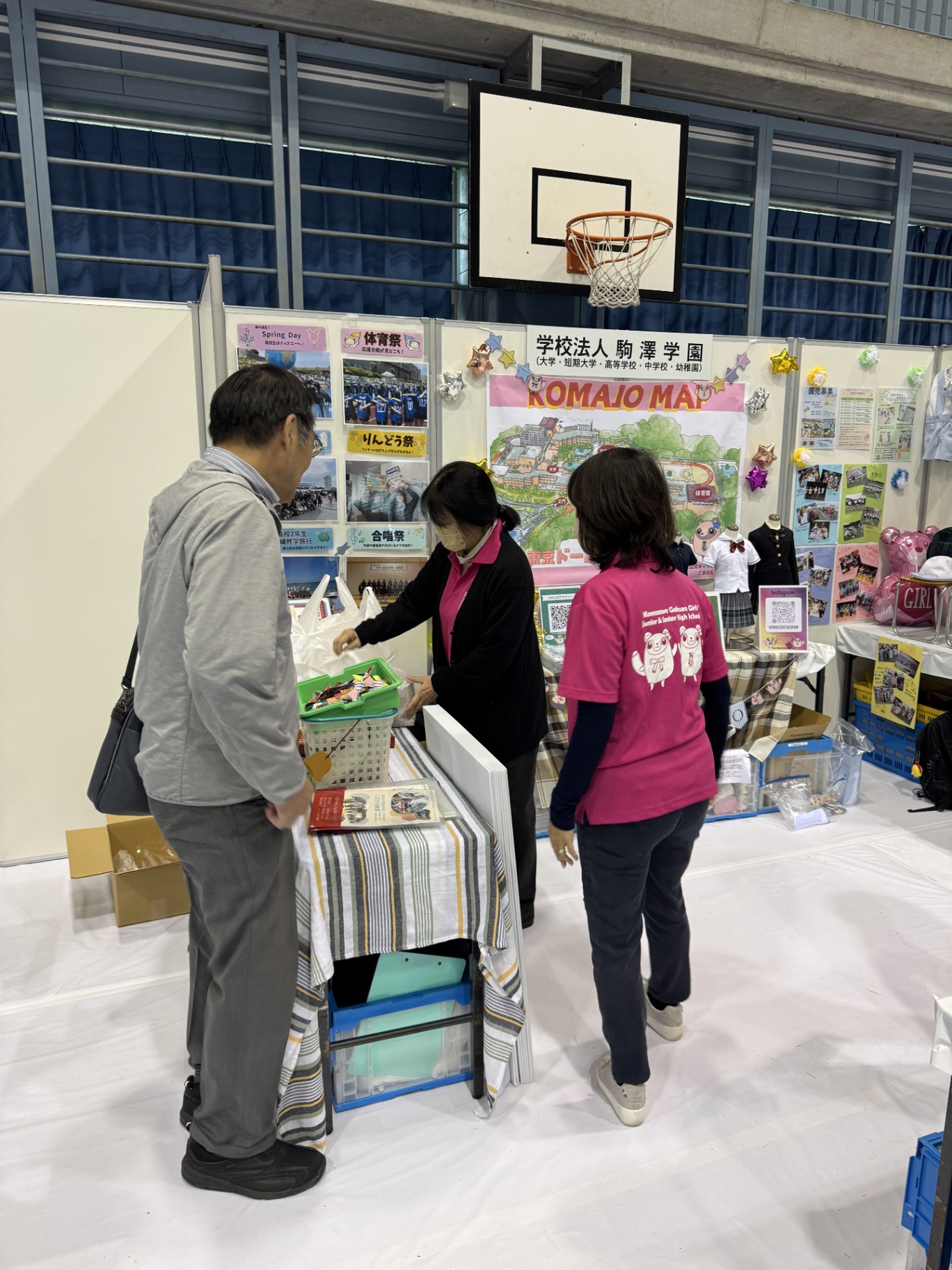 駒沢学園では、幼稚園、中学、高校、大学と一緒のブースを出させていただきました。