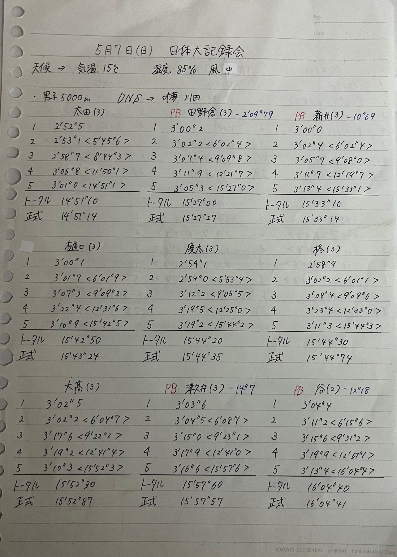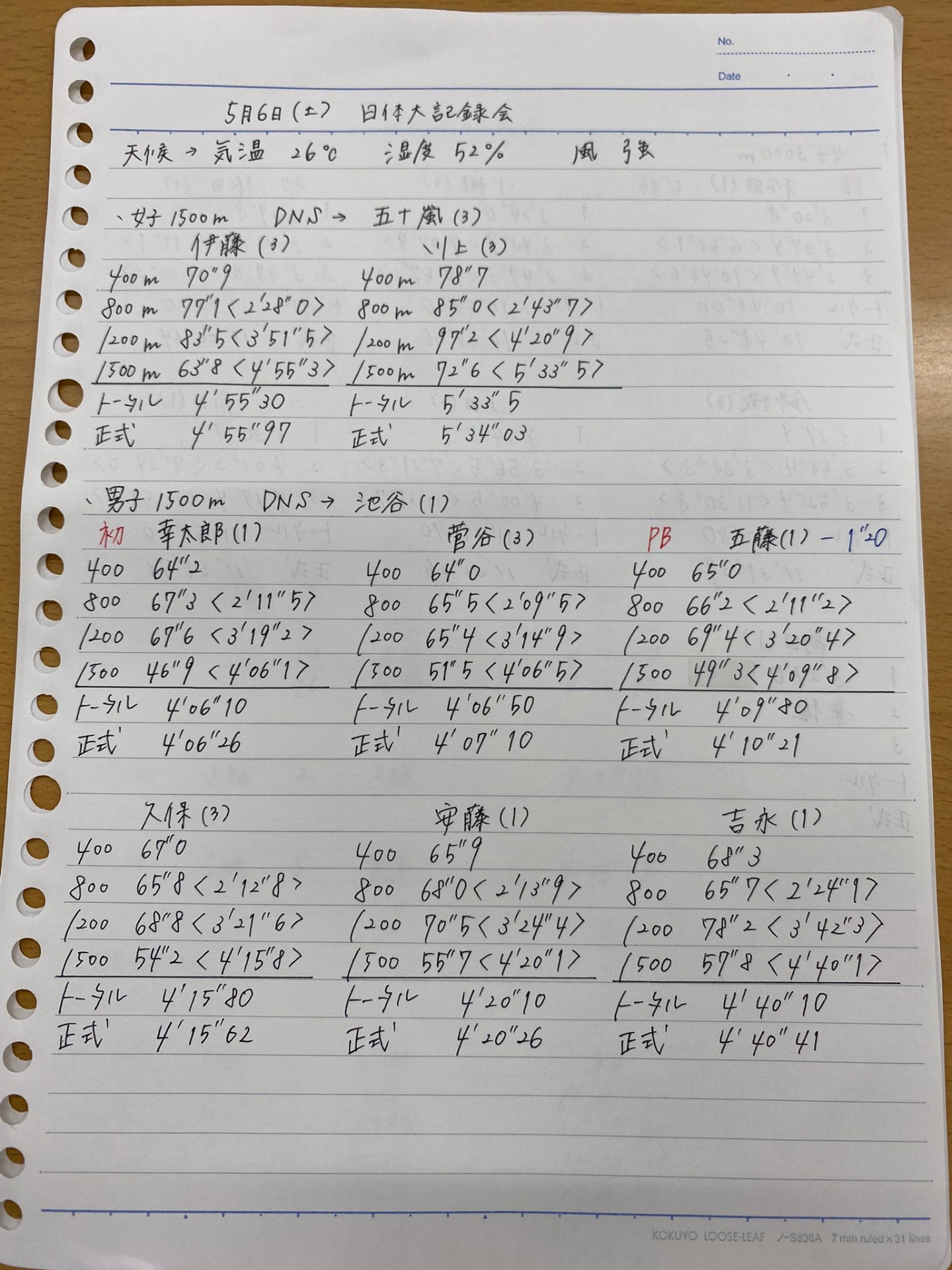 他のメンバーは次が6/10.11の国士館大学記録会だ。1ヵ月しっかり練習して記録を伸ばそう。