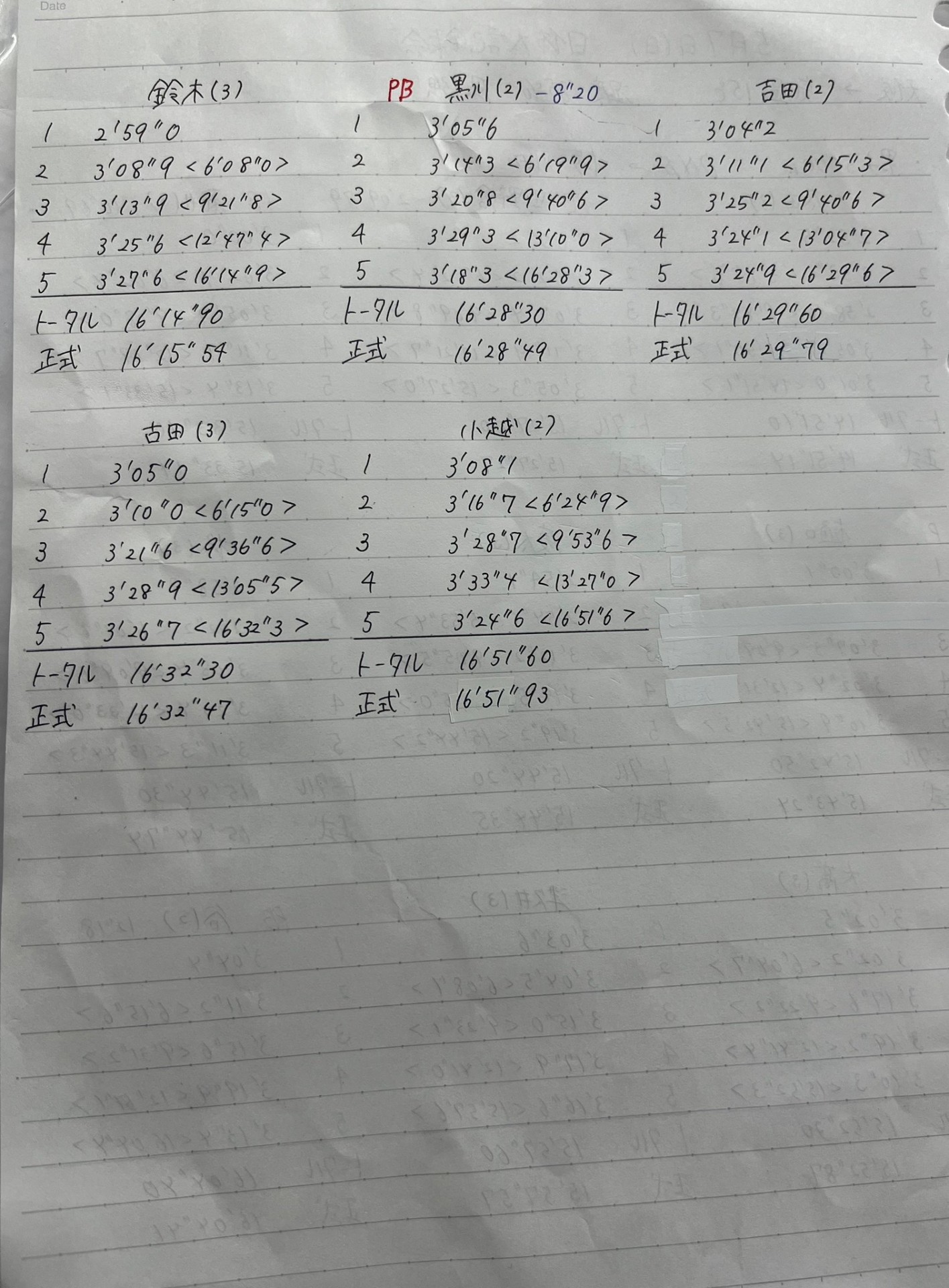 田野倉③が5000mのPBを2′10程更新する走り‼