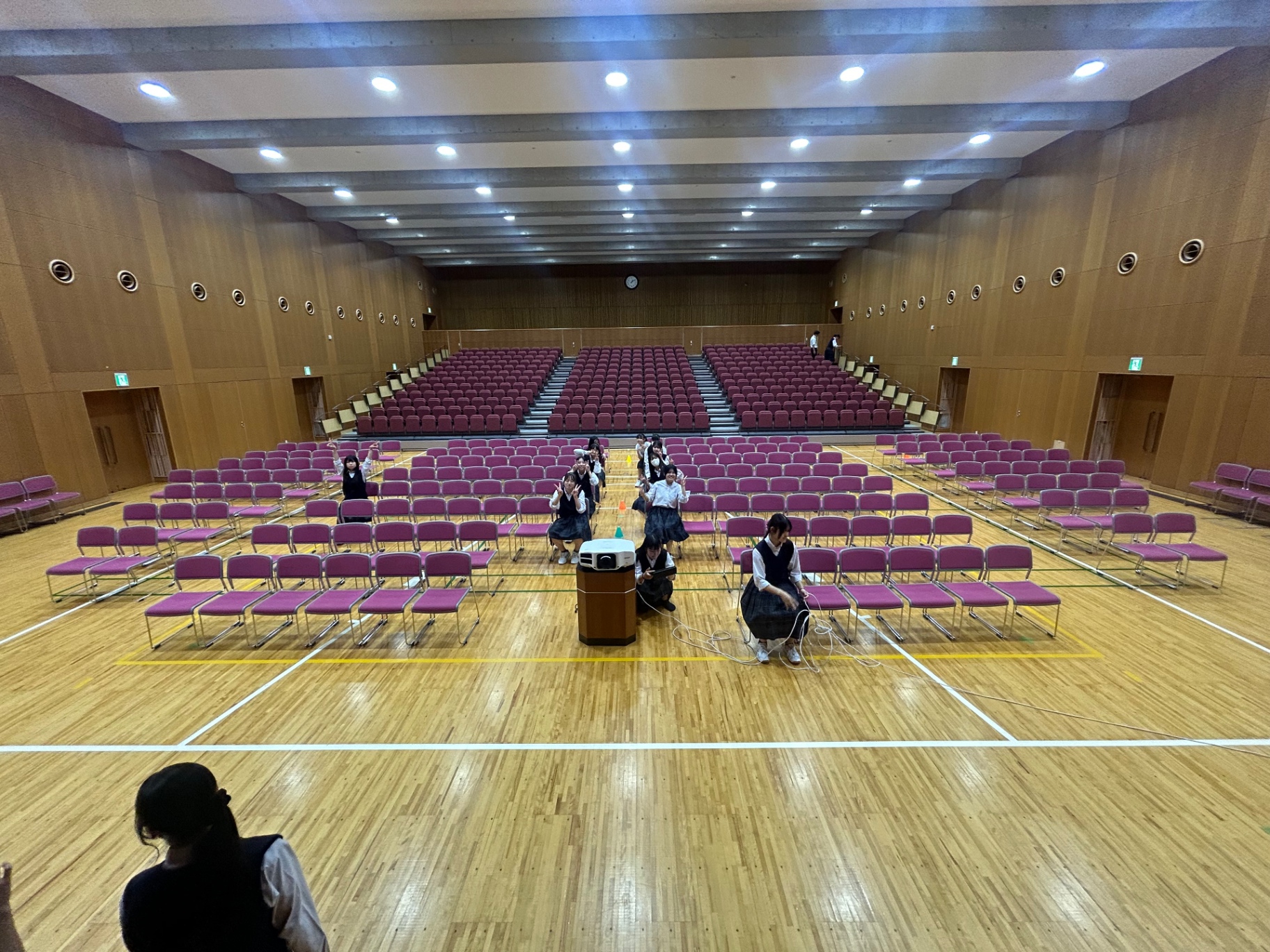 実際に公演会場に行き、会場設営の確認作業を行います!昼休みにみんなで集まって急いで椅子を並べました😓