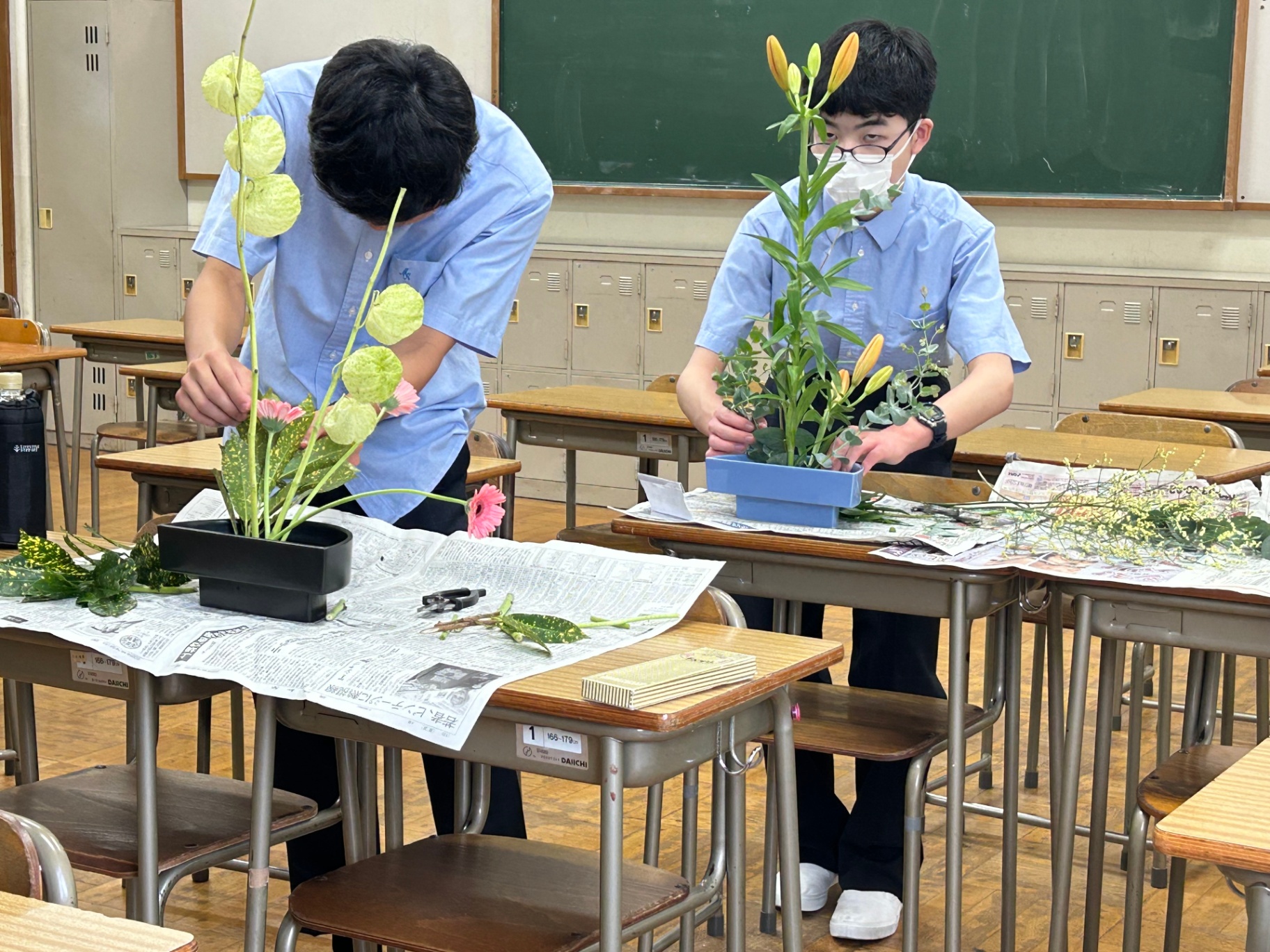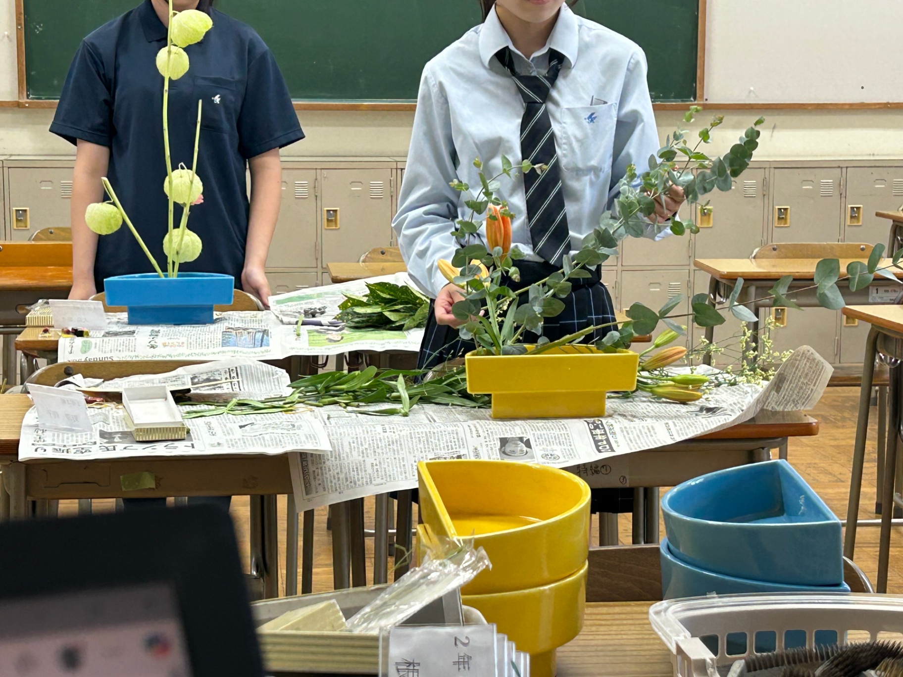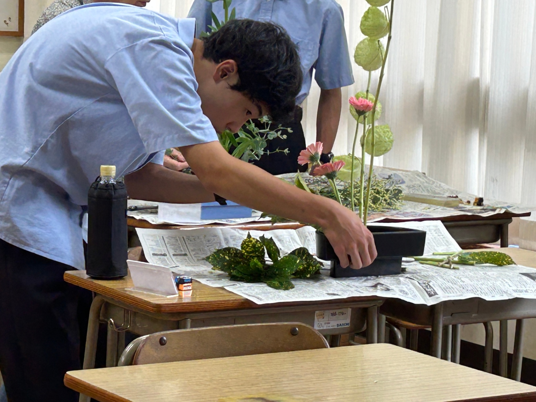 6/14~15 本校の文化祭【葵陵祭】が開催されました。華道部も展示の準備です。