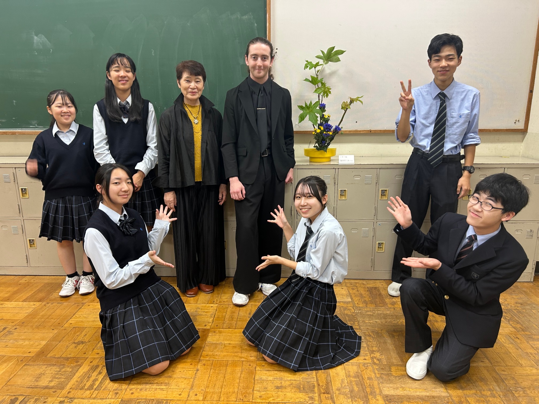 先日のオリエンテーションでいただいた花材を使用して、花いけバトルの練習も兼ね、華道部で共同作品を仕上げました。いかがでしょうか。正面玄関に飾ってありますので、本校へお越しの際にはぜひご鑑賞ください!