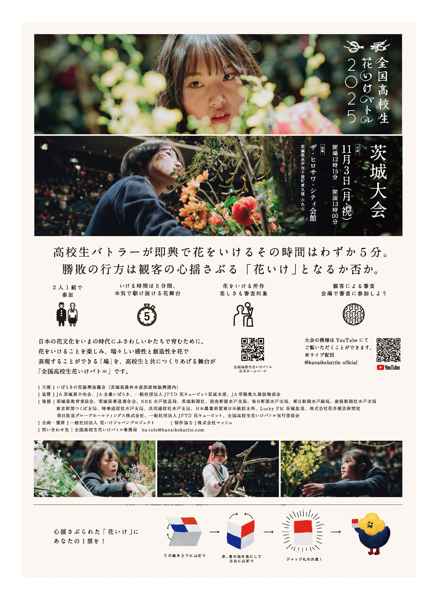 11月3日ザ・ヒロサワシティ会館にて「全国高校生花いけバトル茨城大会2025」が開催されます。今年も本校は参加します!
