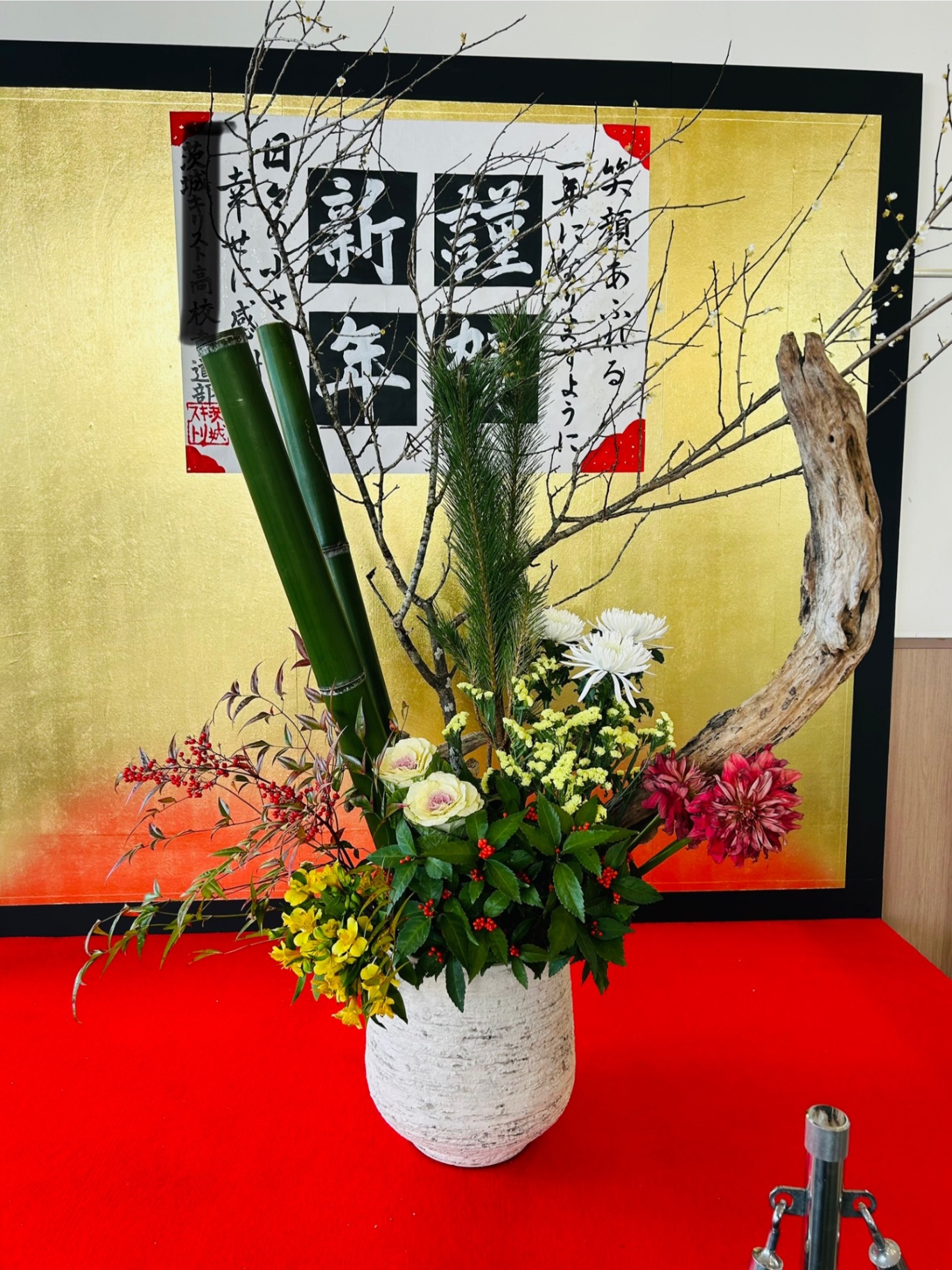 いかがでしょうか。赤芽柳の躍動感とガーベラの黄色が映えますね