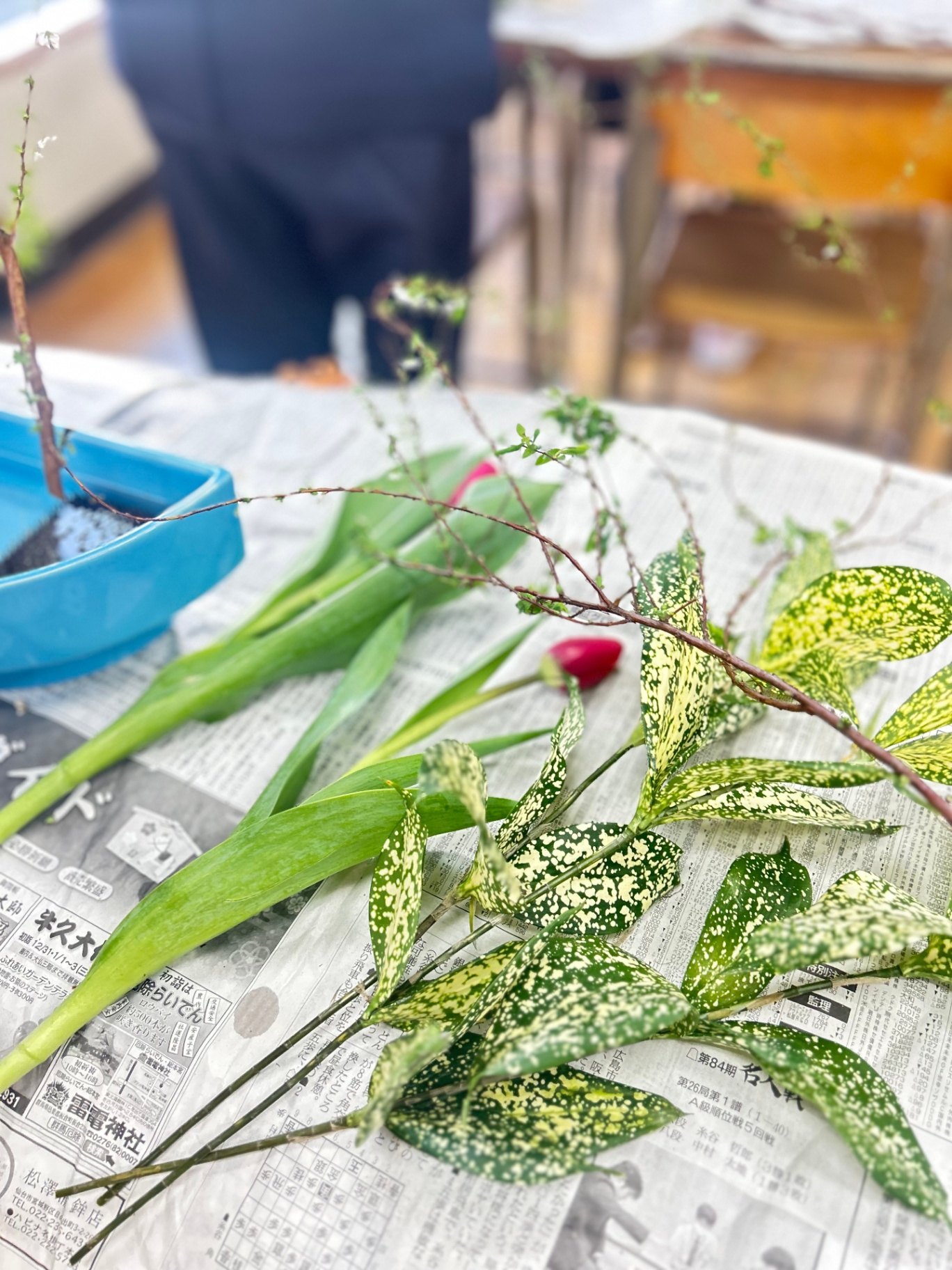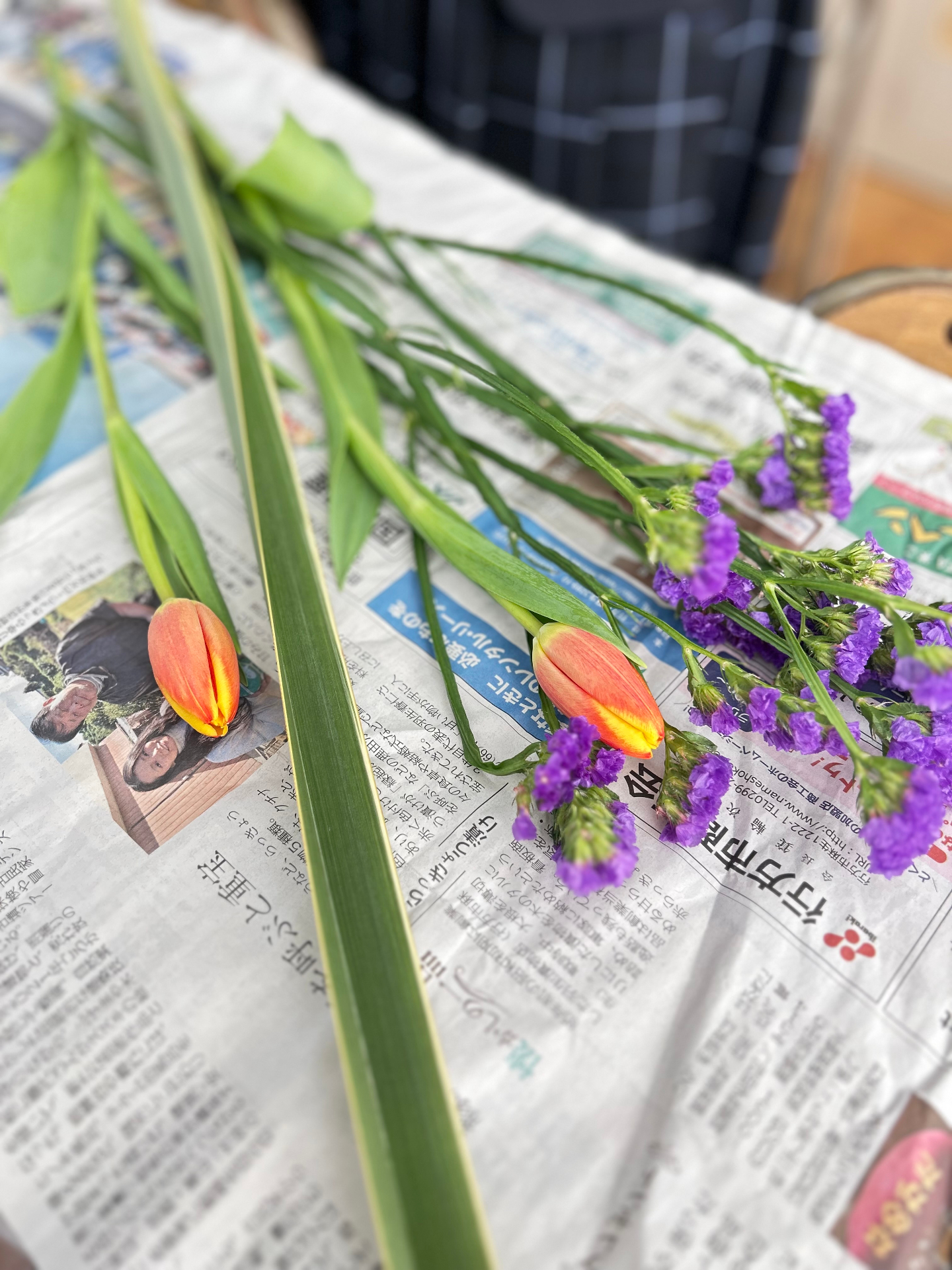 花材①チューリップ、雪柳、ゴッドセフィアーナです