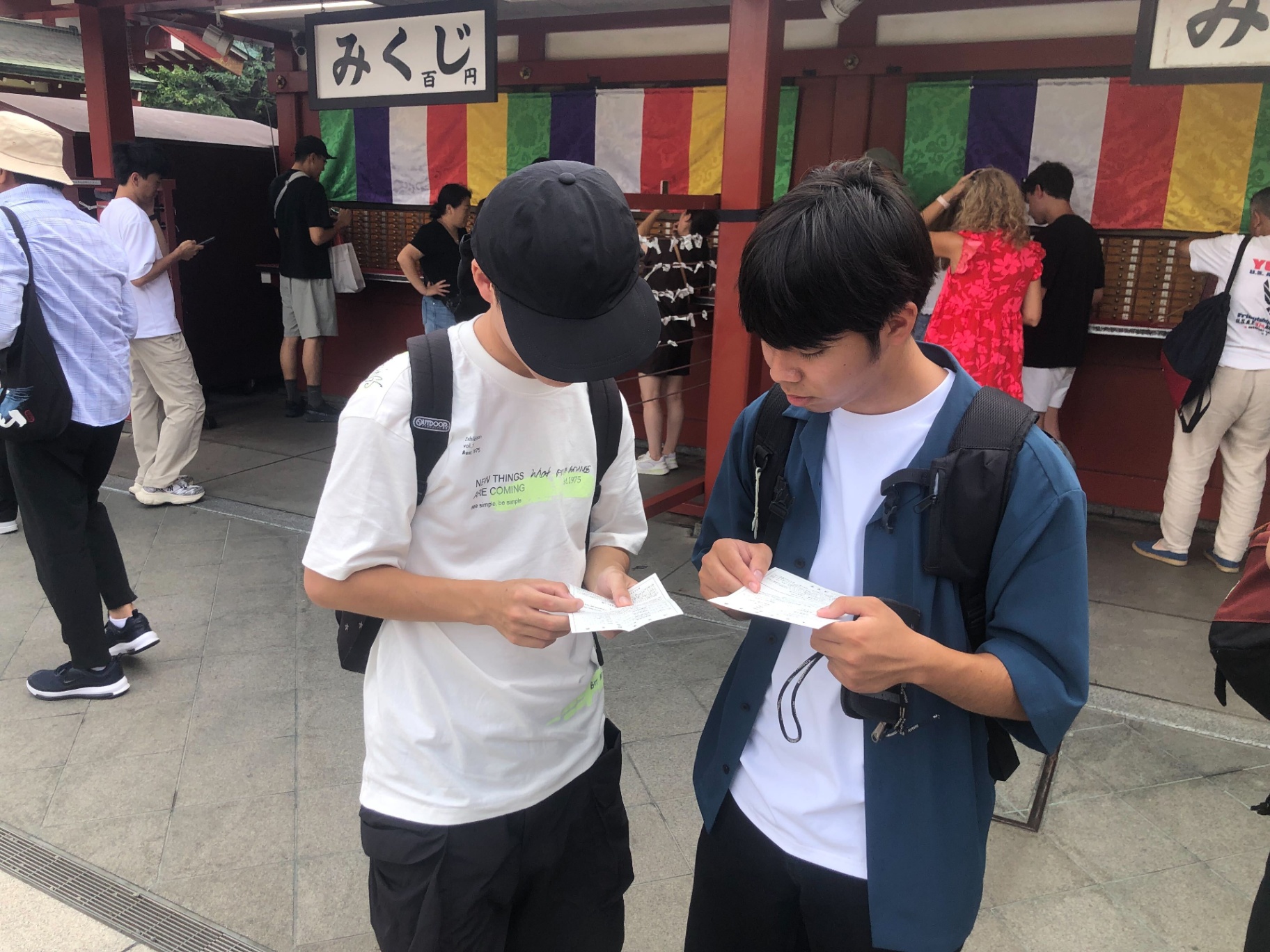 浅草寺でお参りをした後、おみくじをひきました。こちらのおみくじは凶の出る確率が非常に高いといわれているのですが、予想通り3分の1の人が「凶」でした!みなさんも浅草寺に参拝したときは、おみくじをひいてみてください。
