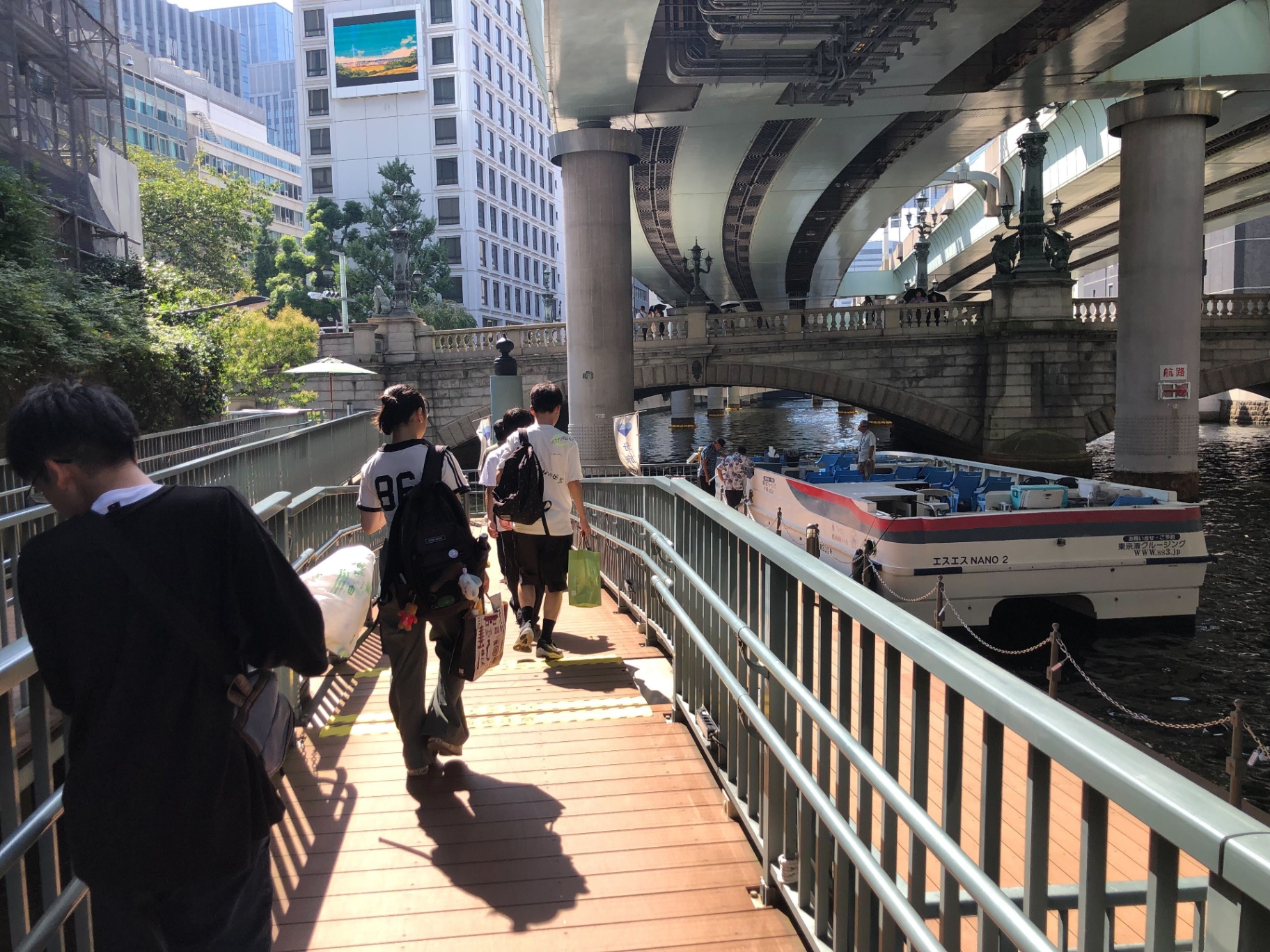 最後に訪れたのは日本橋です。今回はここを起点にした「日本橋クルーズ」に参加しました。添乗員の方の説明を聞きながら墨田川、神田川を船で移動する90分の歴史ツアーの始まりです。