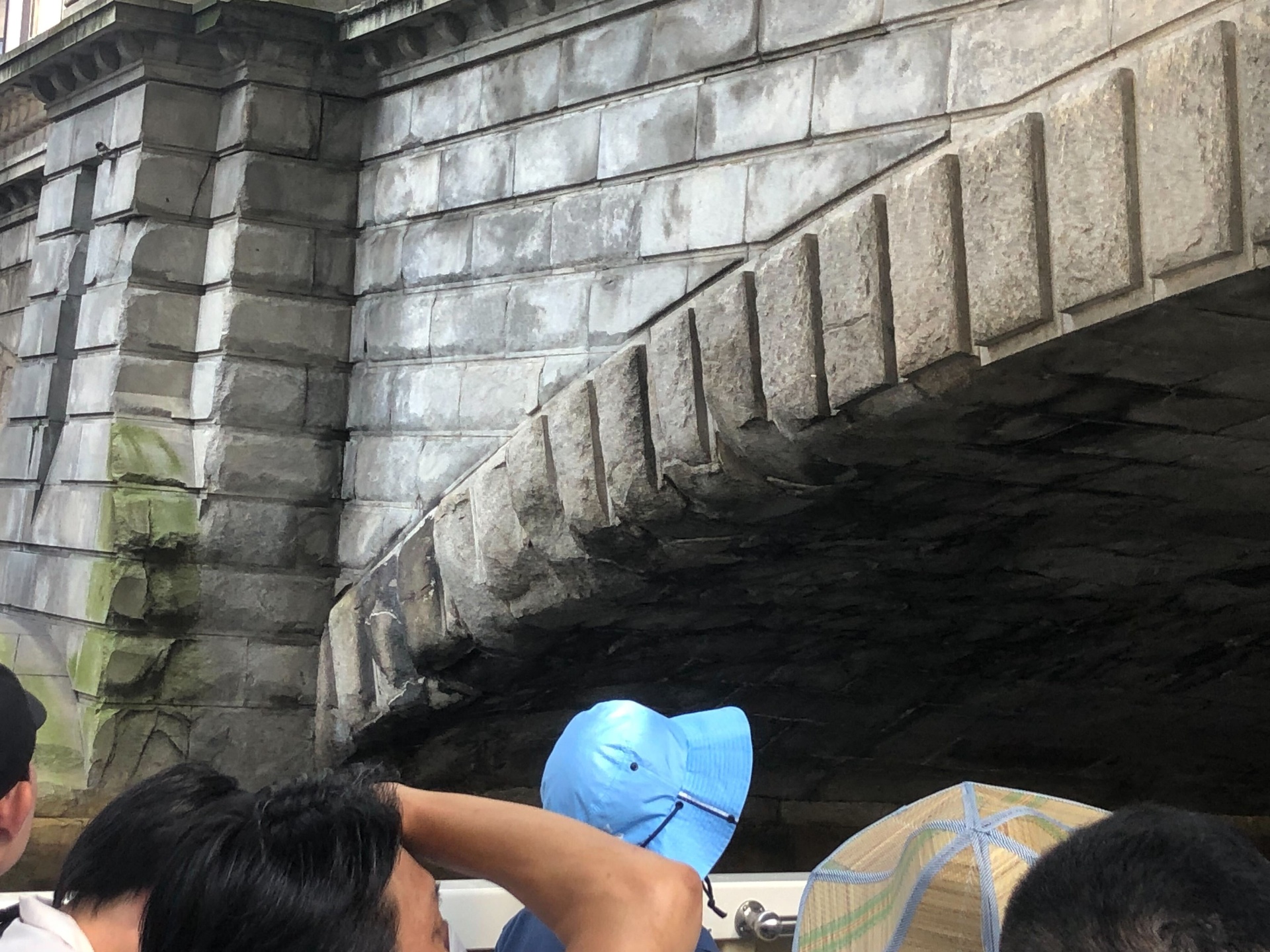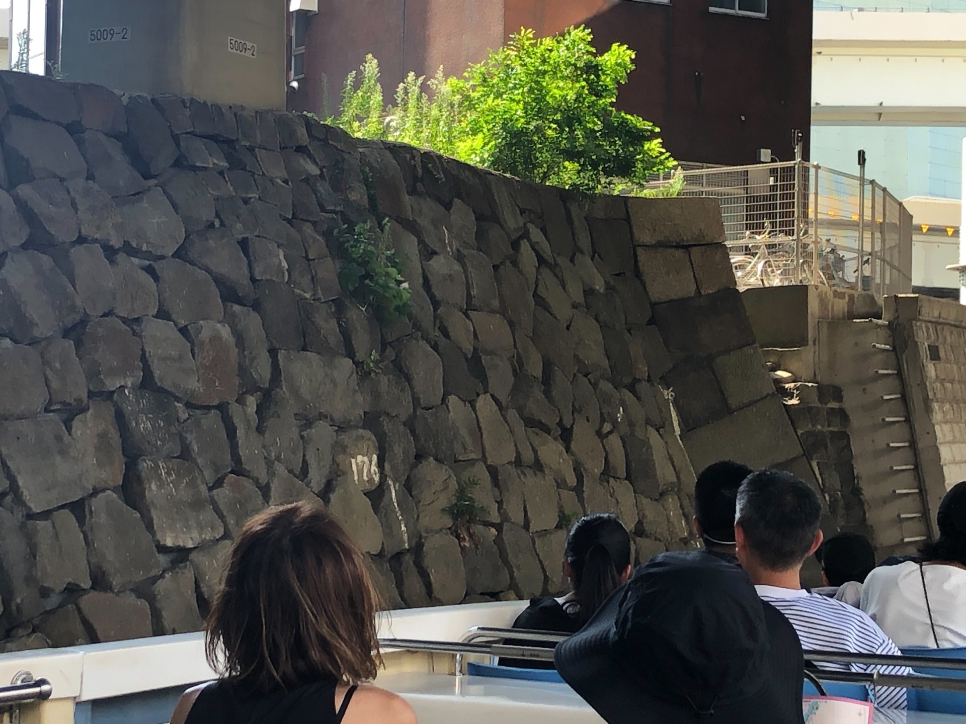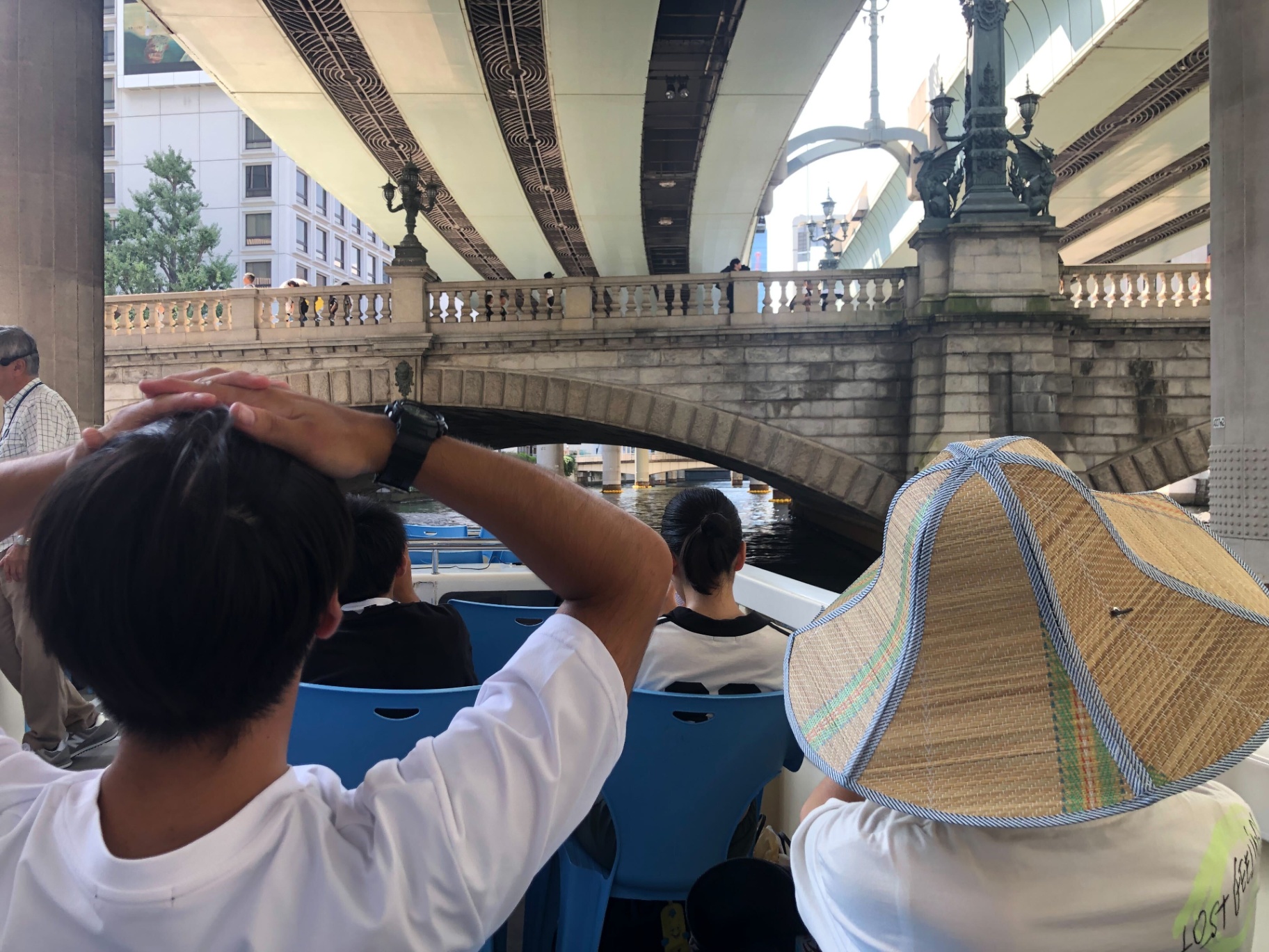 日本橋をくぐる瞬間です。橋の構造を特別に真下から見られるのが、このクルーズの面白さの1つです。移動中は普段なかなか見られない史跡や景色が他にもいろいろあったので、そのうちのいくつかを紹介します。