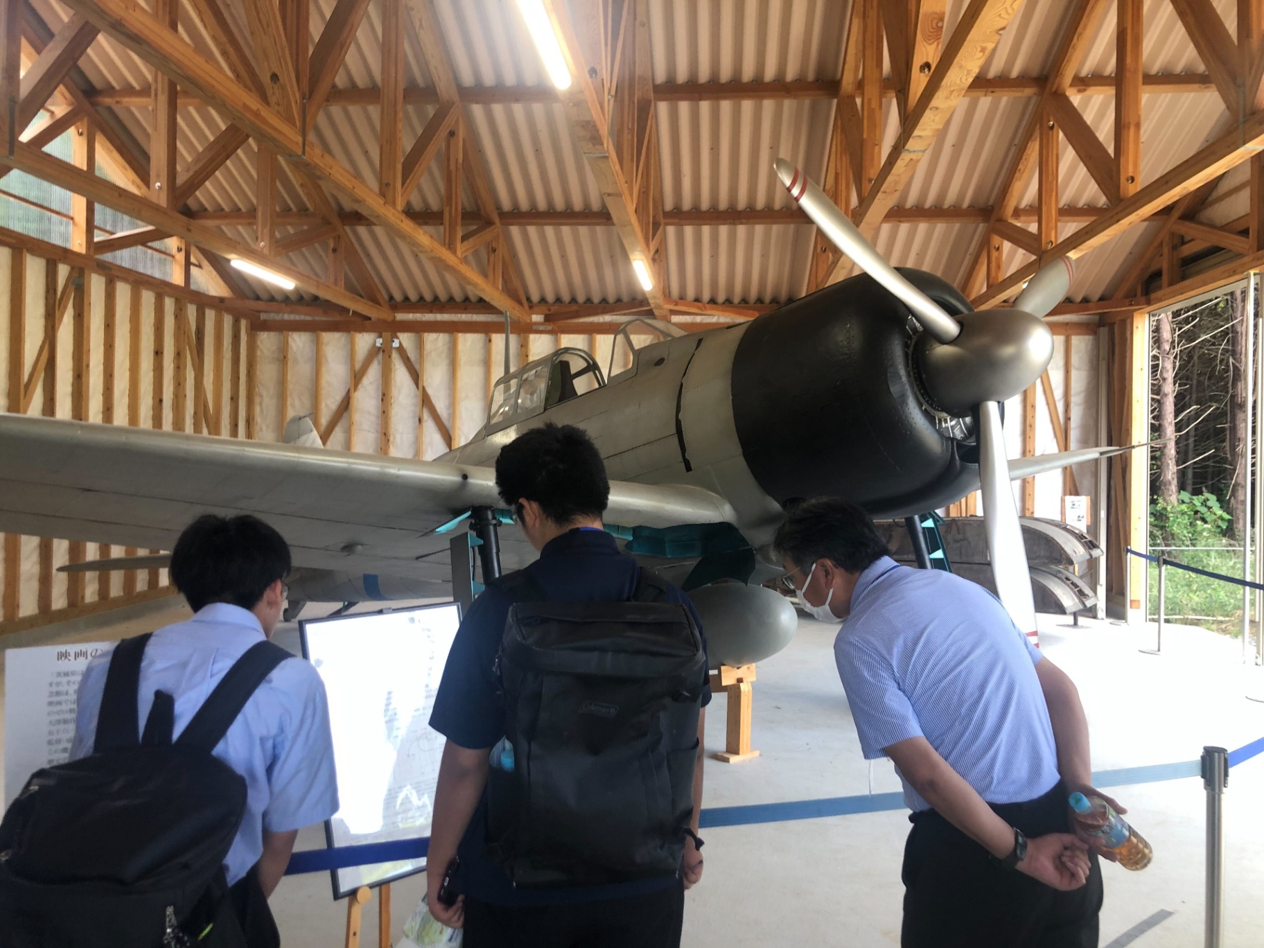 最初に当時の零戦を映画撮影用に再現したレプリカを見学しました。思っていたよりも大きく、迫力がありました。