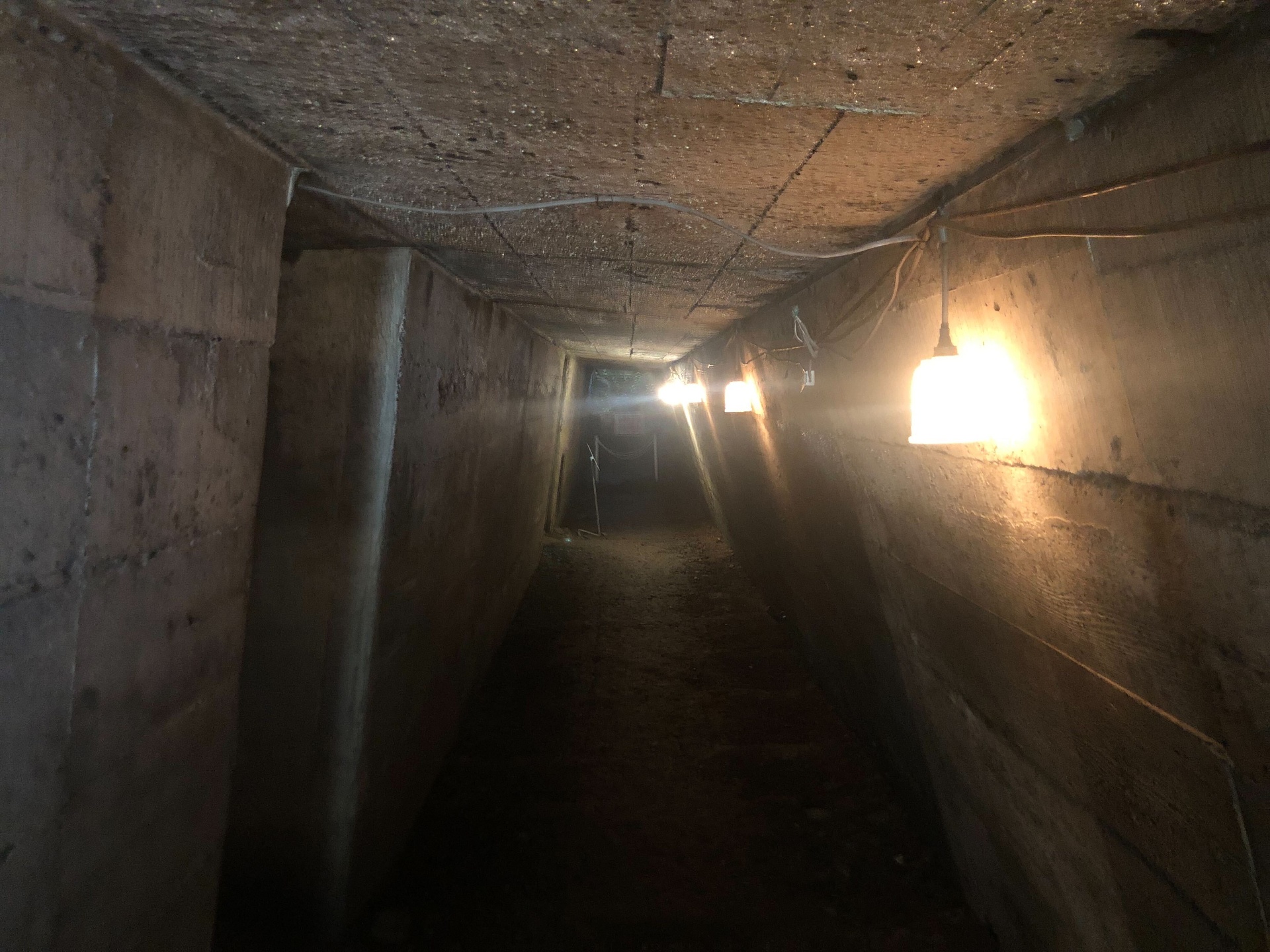このように薄暗い通路や部屋がいくつかあり、みんなで懐中電灯を持って歩きました。こちらもほぼ当時のままだそうです。