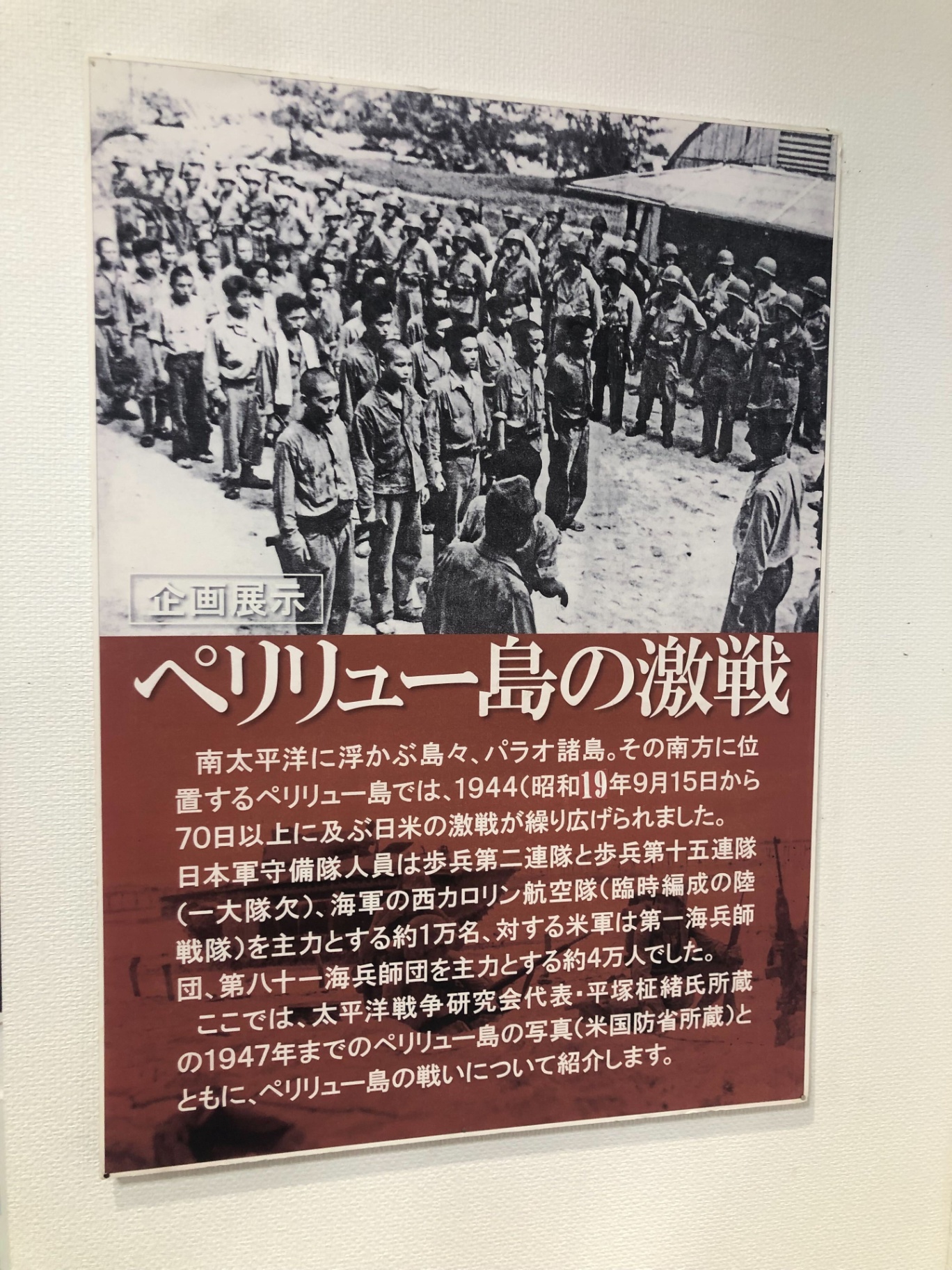 本庁舎では企画展「ペリリュー島の激戦」が開かれていて…
