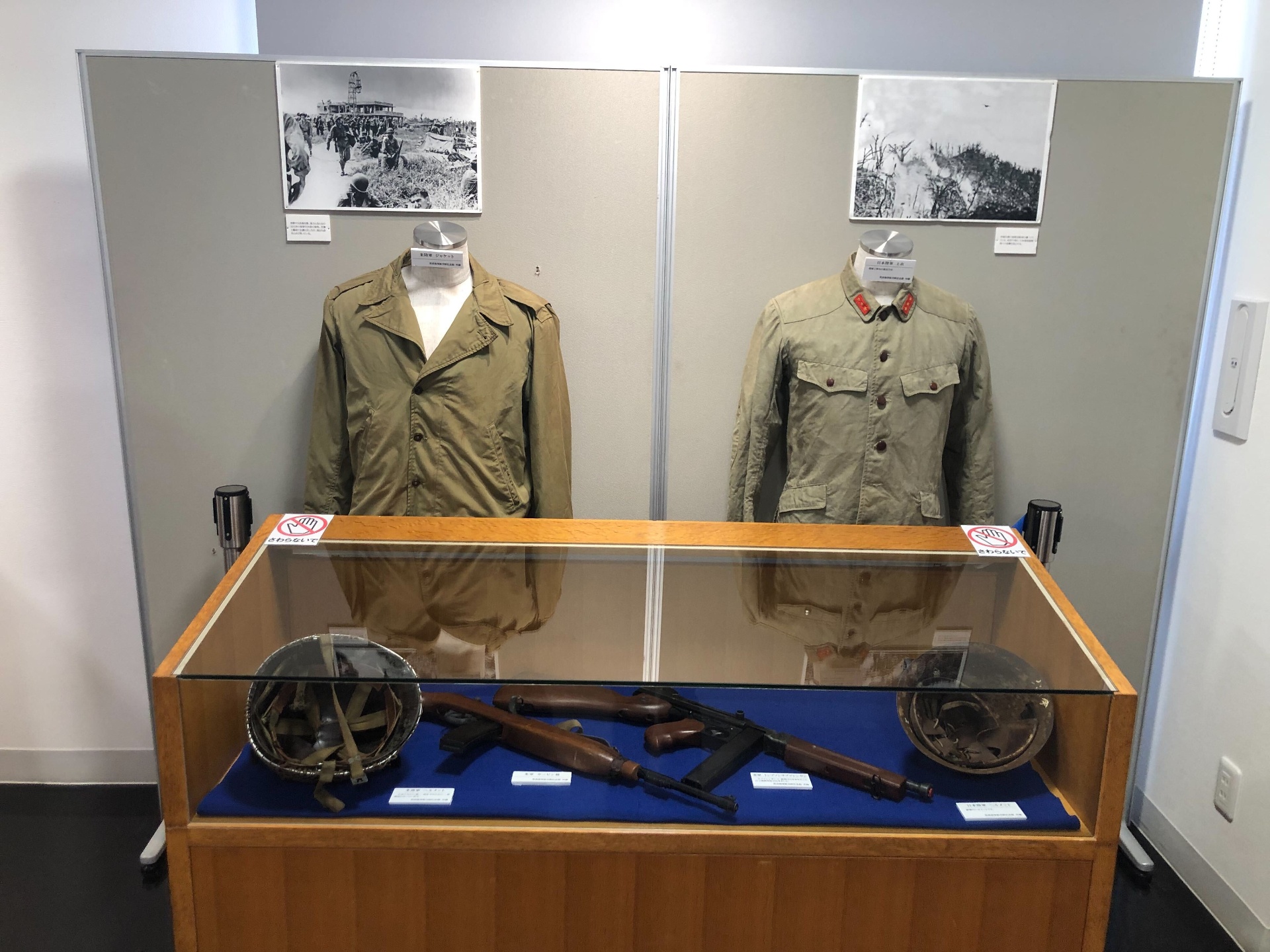 太平洋戦争末期におけるペリリュー島の戦いの記録とともに、軍服や武器・弾薬などが展示されていました。