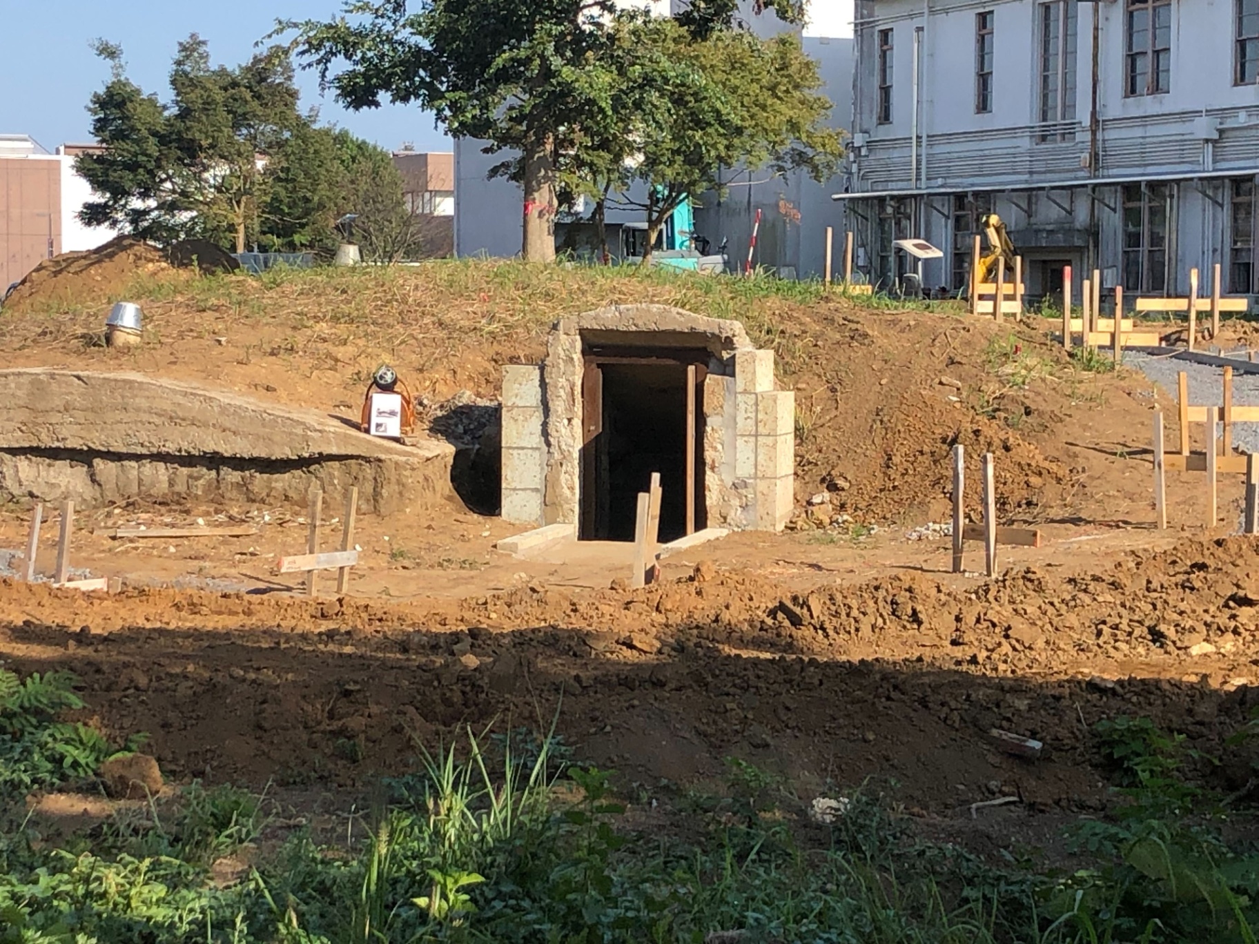 ガイドツアーでは通常立ち入り禁止の場所も見ることができました。ここは戦時中の「地下無線室」で、まだ調査のための工事がおこなわれている途中でした。周辺には非常時に備えて掘られた地下通路が張り巡らされていました。