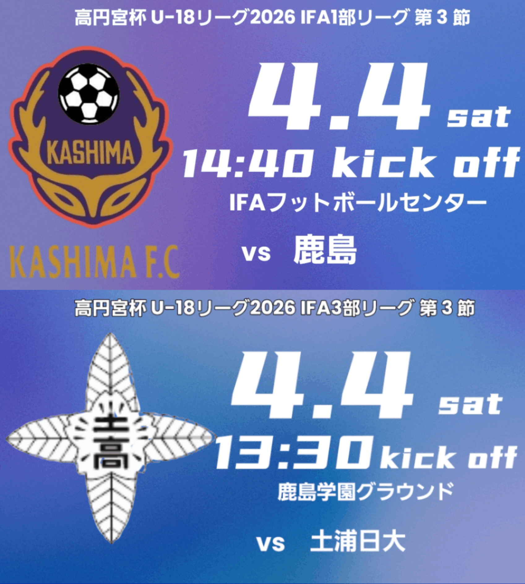 マッチプレビュー【IFA1部、3部リーグ開幕戦】