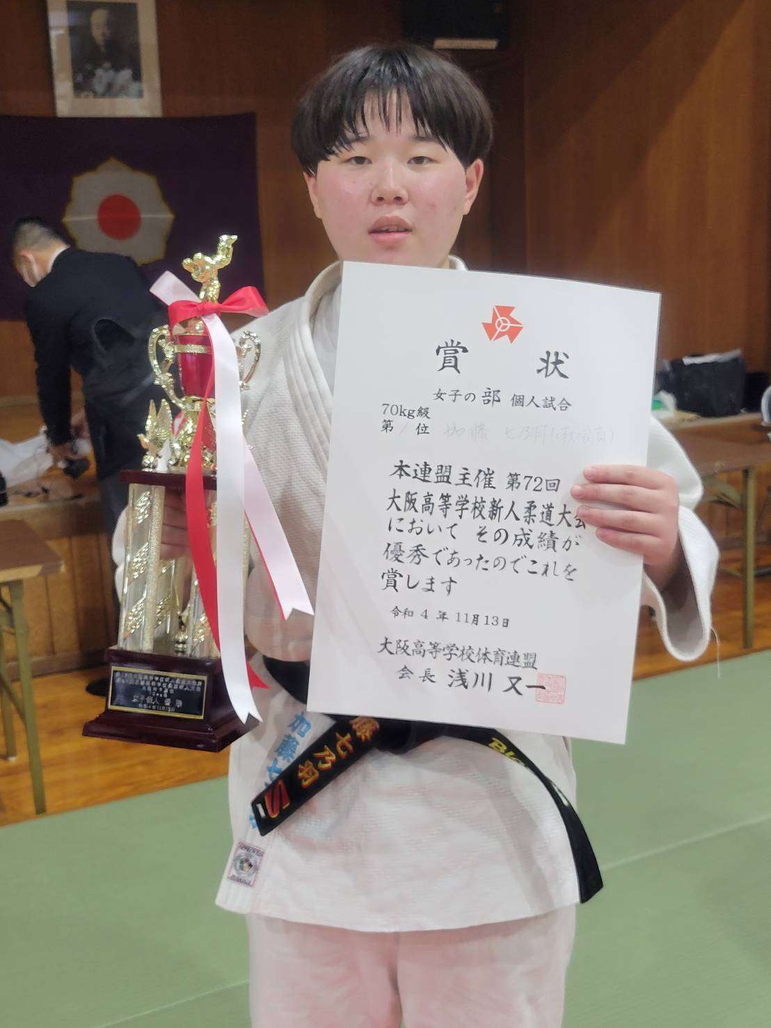 第72回大阪高等学校新人柔道大会 女子70㎏以下級優勝 加藤 七乃羽