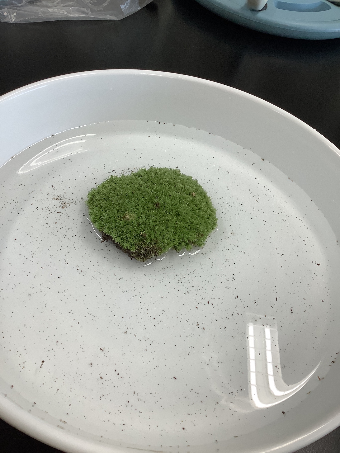 採取した植物のうち、コケを水につけておいて次回、育っているかを観察します