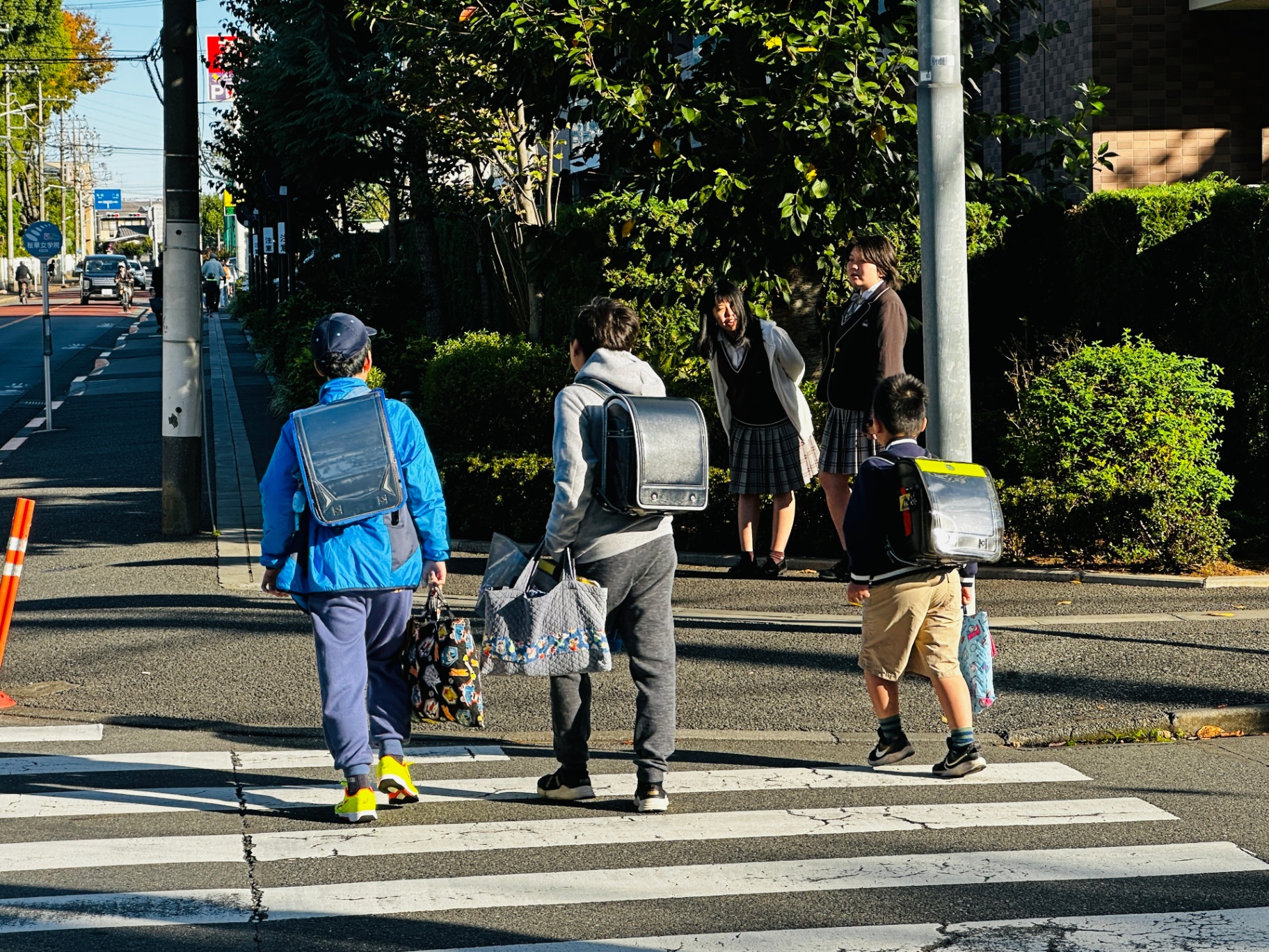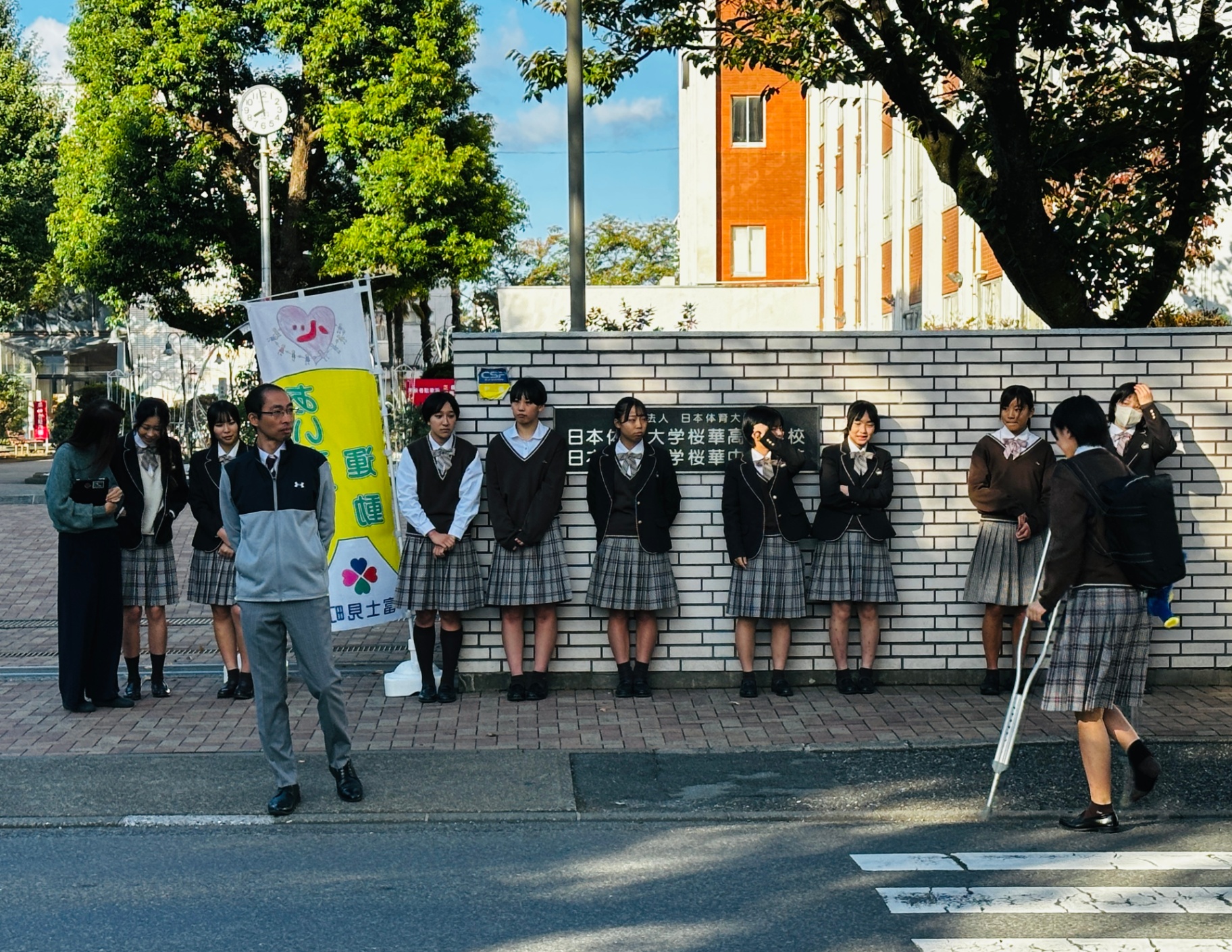 インターアクターたちが活動している姿につられ、通学中の桜華生にもあいさつの輪が広がるのは勿論、通学中の小学生や通勤中の社会人、近隣の中高生からもあいさつが帰ってきました。