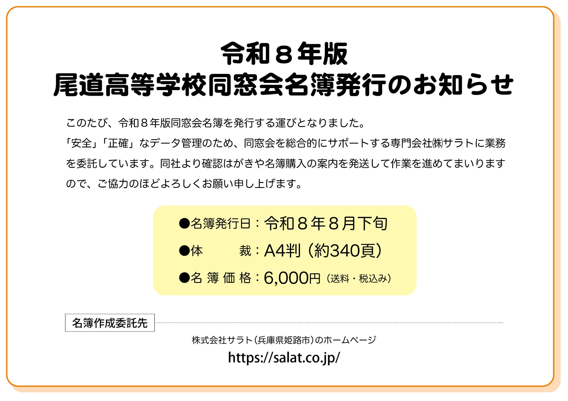 令和8年版尾道高等学校同窓会名簿発行のお知らせ