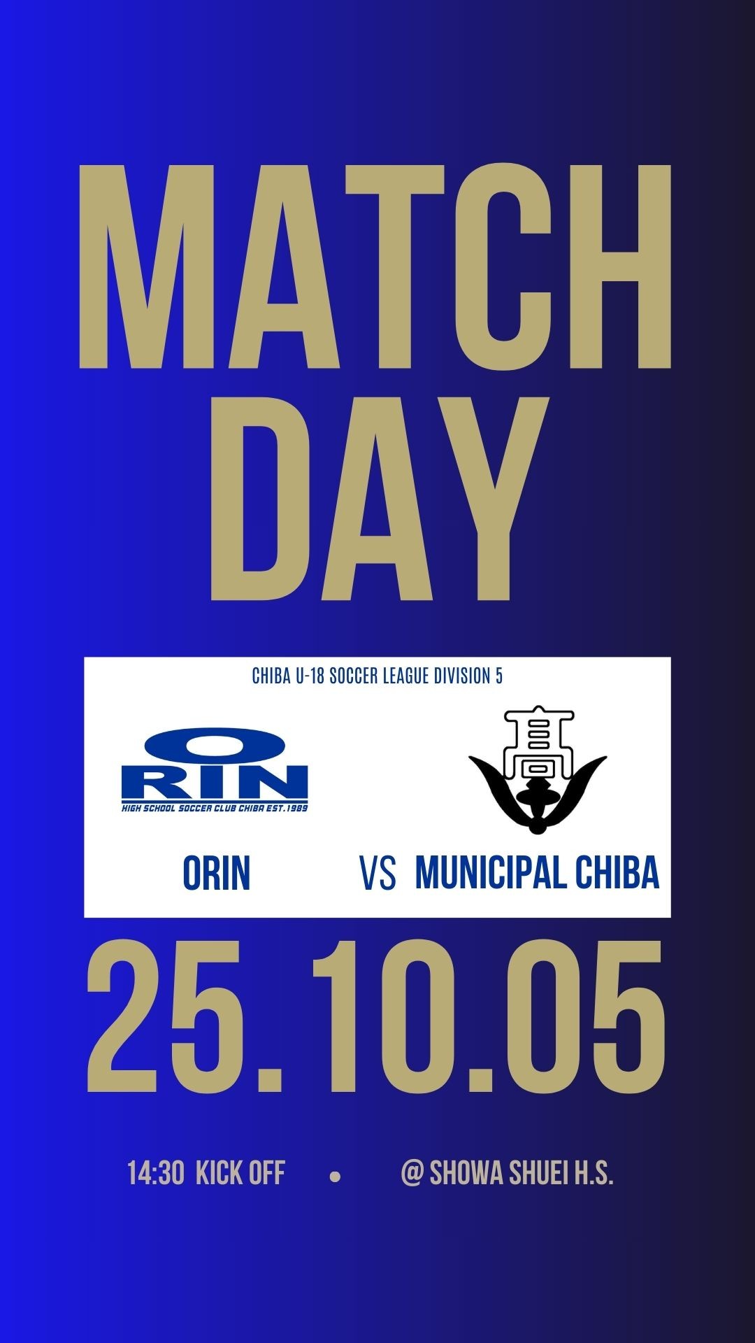 千葉県U18サッカーリーグDIV.5後期桜林VS市立千葉2025.10.05(日)14:30キックオフ会場:昭和秀英高校応援よろしくお願いします。