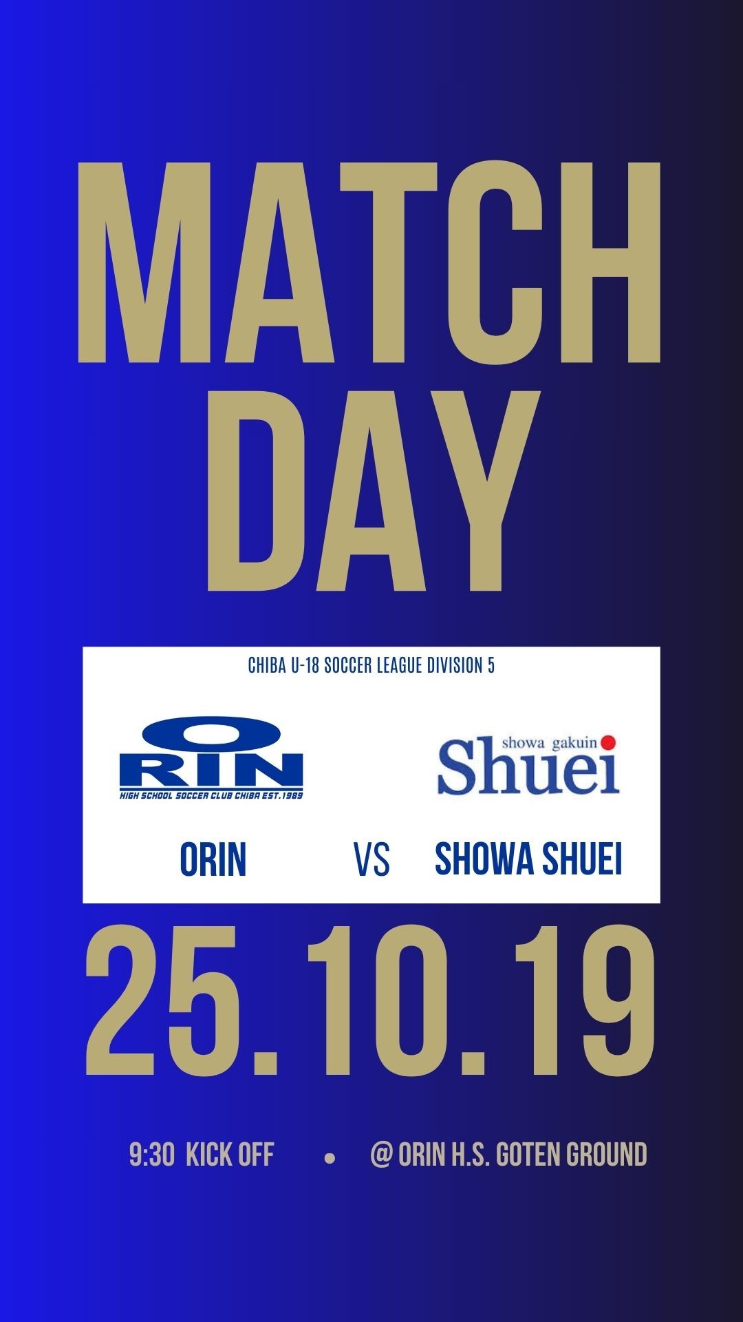 千葉県U18サッカーリーグDIV.5後期桜林VS昭和秀英2025.10.19(日)9:30キックオフ会場:本校御殿グラウンド応援よろしくお願いします。