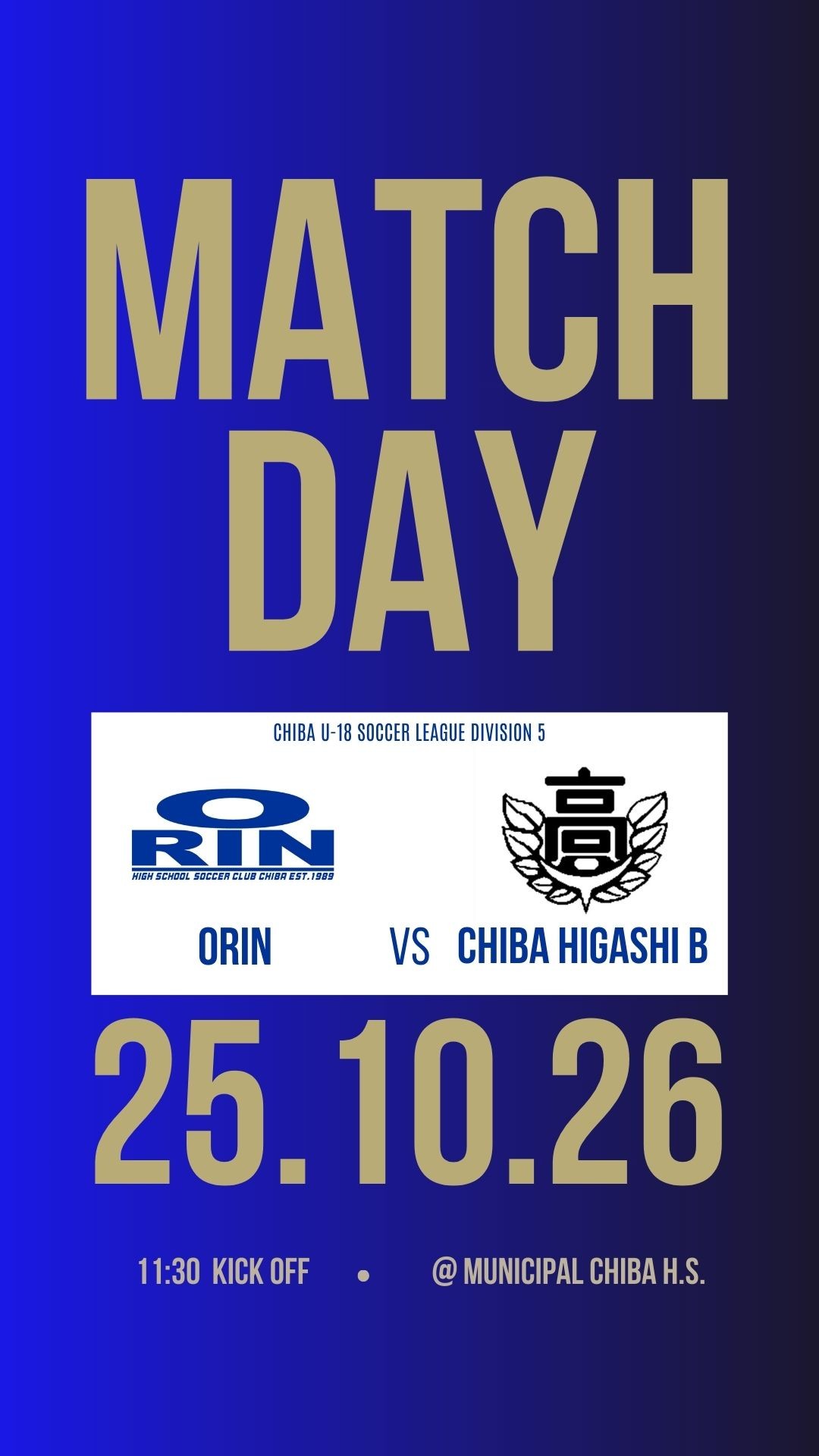 千葉県U18サッカーリーグDIV.5後期桜林VS千葉東B2025.10.26(日)11:30キックオフ会場:市立千葉高校応援よろしくお願いします。