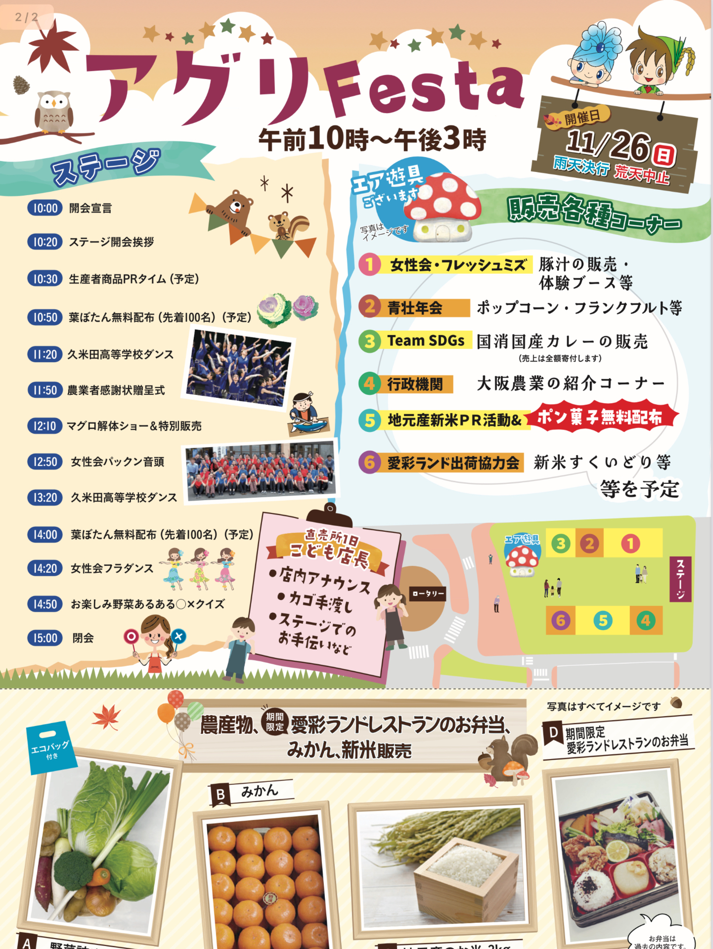11月26日 道の駅 岸和田 愛彩ランドで JAいずみの農業祭に出演させていただきます。