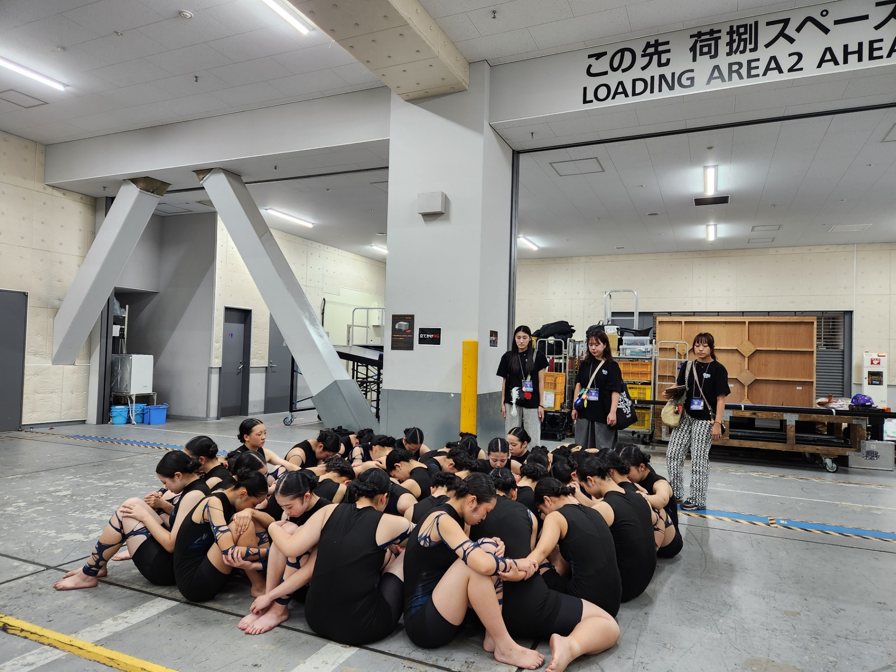 1st Stageの出場順はBブロックの12番。私たちの想いをしっかり届けたいという気持ちと共に、今までを超える2分30秒にできるよう本番までの時間を活用し身体と気持ちを上げていきました。演技の最後には歌を歌うので、声が出るようにリップロールをして出番を待ちます。