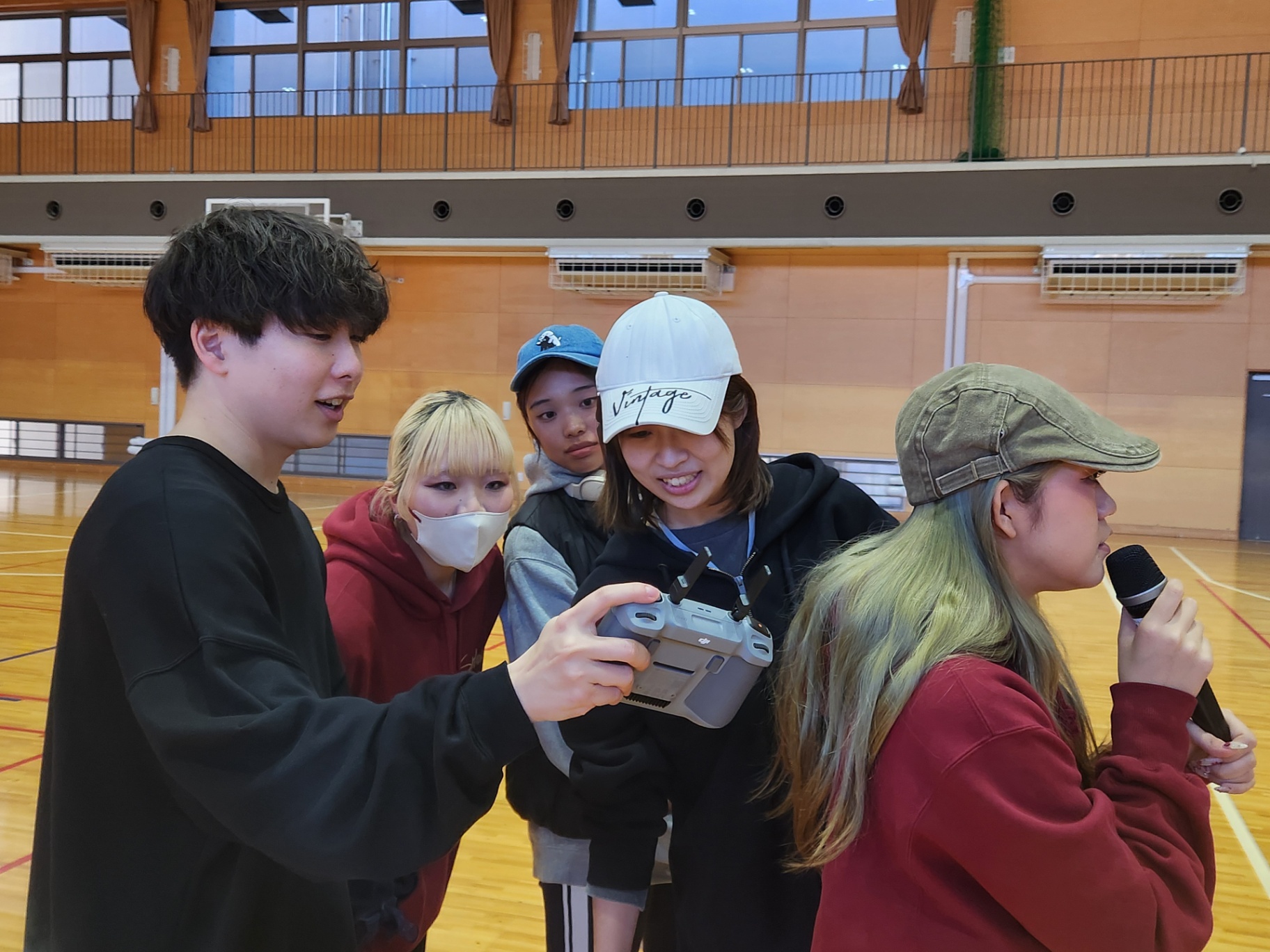 撮影当日、やはり4クラブが集まるととても人数が多く、「これは凄いものになるぞ!」と確信しました。3台のカメラで撮っていただいたのですが、そのうちの1台はなんと、ドローン!!まさかドローンがあるとは思ってもいなかったので、ビックリしました。物珍しそうに、みんなドローンに向かってたくさんアピールをしていました。笑