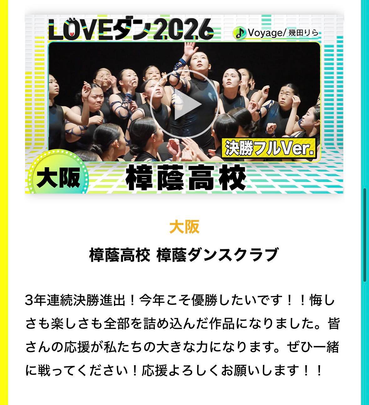 是非、LOVEダン2026、樟蔭高校へ全力のエールをよろしくお願いします!