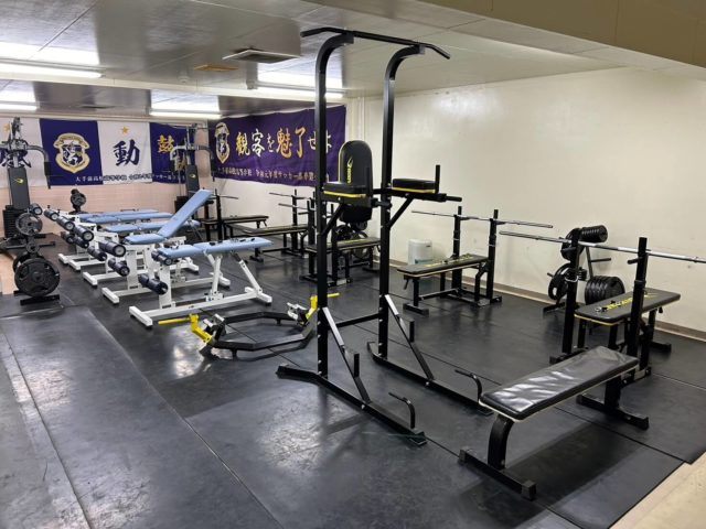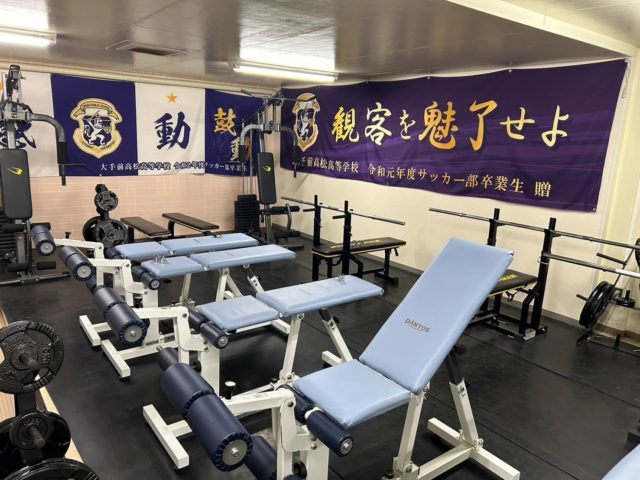 学校内にあるサッカー部専用のトレーニングルーム。主に筋力トレーニングに使用する。