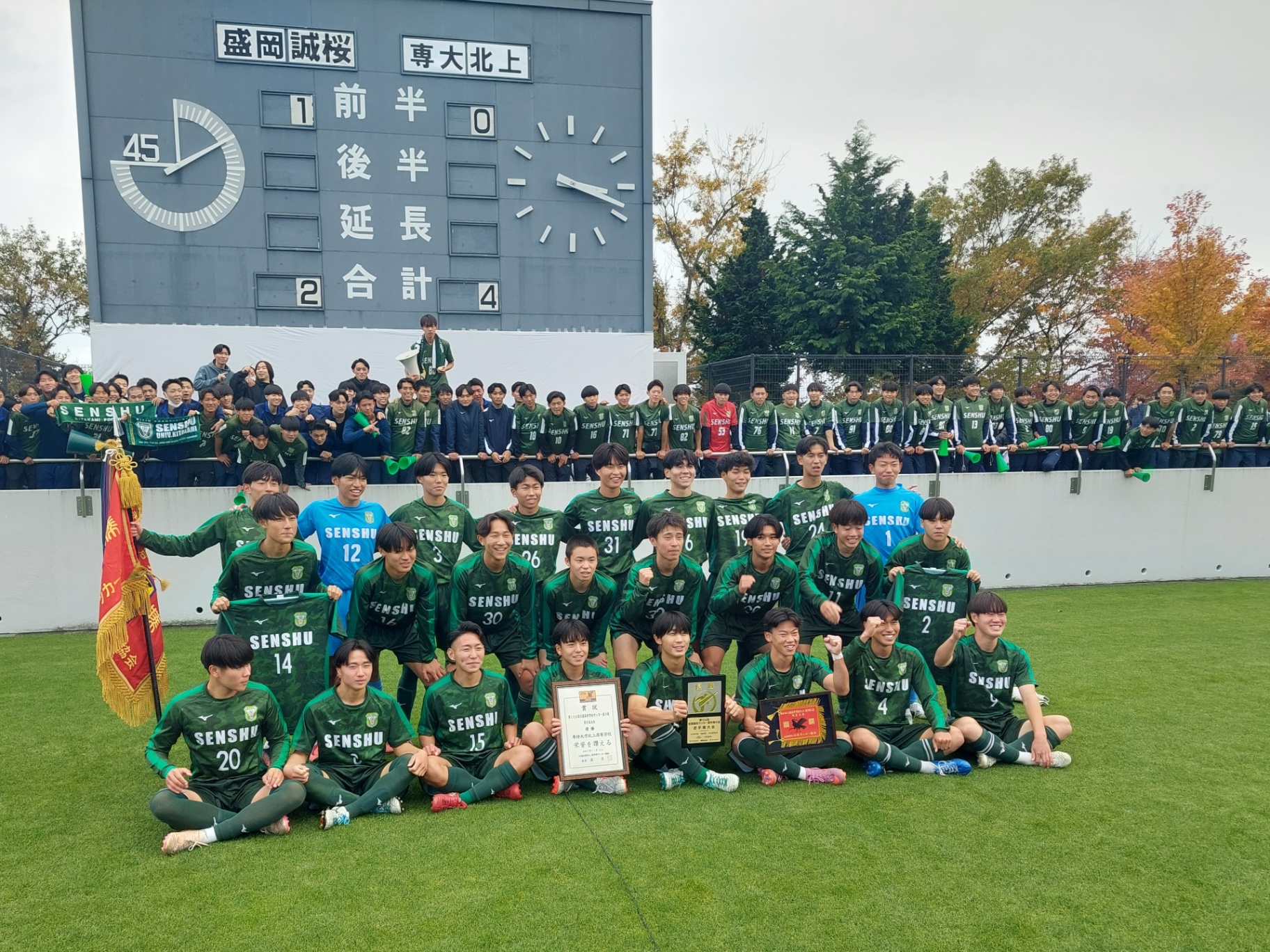決勝戦の対戦相手は、今年2戦2敗している盛岡誠桜高校。堅い守備が持ち味のチームで、本校はボールは保持するもののなかなか崩し切れず、逆にカウンターやミスから失点し敗北を喫していた相手、それだけに先制し試合を有利に進めたい所でしたが…