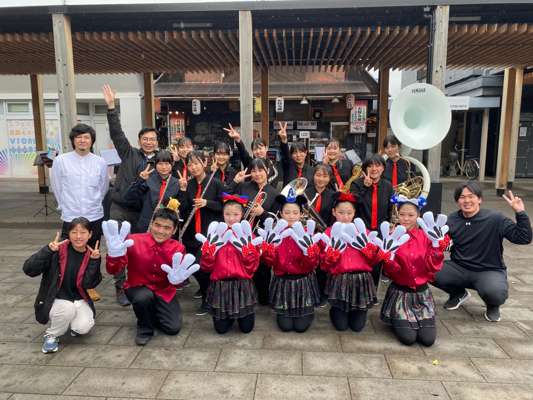 皆さんこんにちは吹奏楽部です。今日は日田駅でのイベントに参加させていただき、バトン部と一緒にディズニーメドレーを披露しました。あいにくの雨でしたが、たくさんの方が見に来てくださって本当に嬉しかったです!ありがとうございました!!これからもご支援ご協力お願いします。