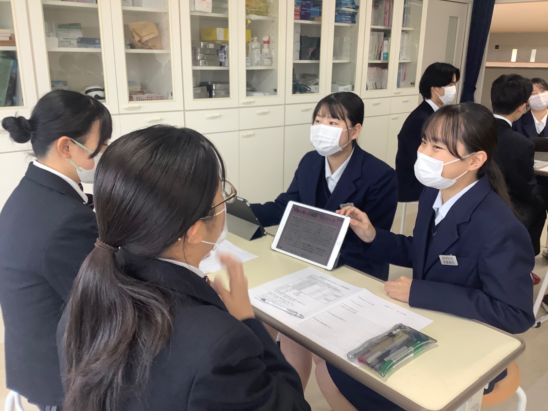 A.専門教科では、人体の構造と、看護の基本について、基礎的な看護の技術について学習を始め、学年が上がるごとに、病気や治療のことなども勉強をします。一般教科の学習も、1年次より並行して行います。国語、英語、数学だけでなく、一般的な高校生が学習する。内容に関しては3年間の基礎課程で行います。それに合わせて、漢字検定や英語検定の取得も行っていきます。また、情報技術の学習も行うため、プレゼンテーション検定も受験します。