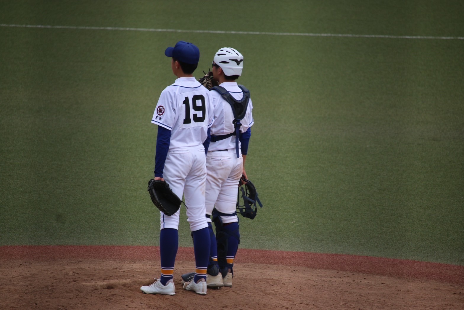 強豪校の初戦敗退や苦戦などが各地区大会で起きていることもあり、初戦の難しさを改めて懸念していました。夏らしい快晴の下プレーボールも、天候の変化や風向きの難しさもあり、序盤はミスからランナーを背負いつつも、要所を全員で守り無失点で切り抜けました。相手投手を打ちあぐねていた打戦も、3回以降は徐々に捉え始め、着実に得点を重ねることができました。先発の2年生投手宮浦、4回から引き継いだ1年生投手八重尾が好投し、一度も主導権を渡さず、全員で守り切り勝利を掴むことができました。