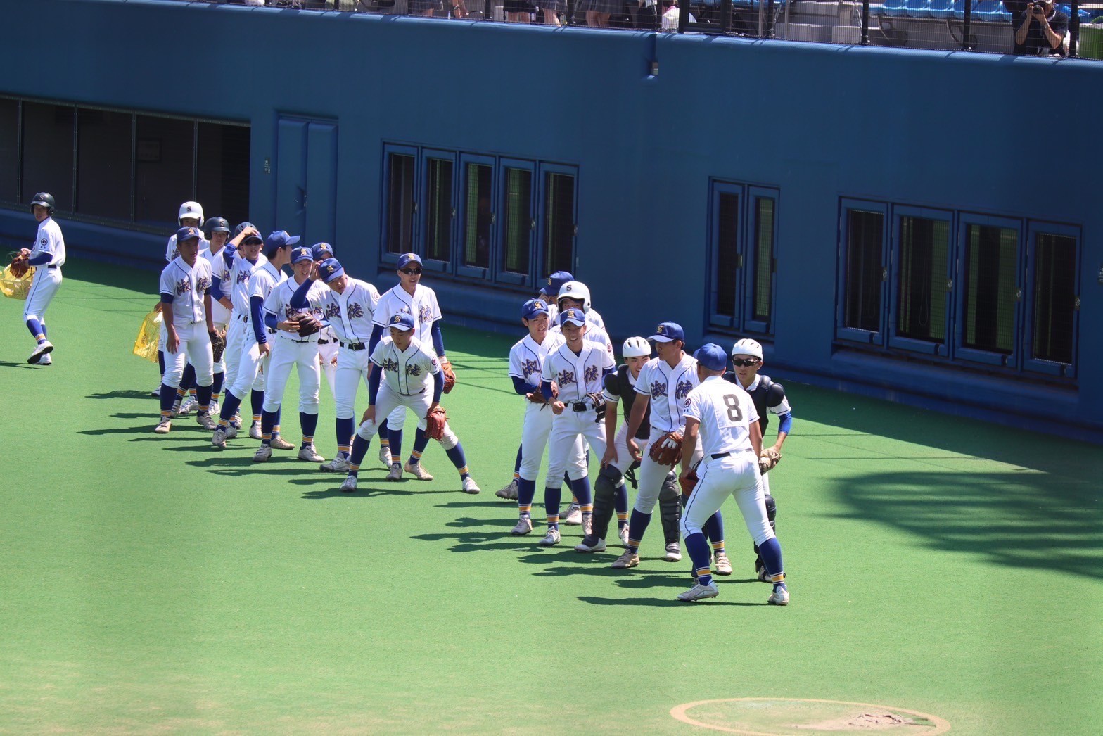 2回戦も一塁側スタンドには多くの生徒や学校関係者が駆けつけて下さいました。猛暑の中でも爽やかな海風が吹き、吹奏楽部とバトンダンス部による華やかな応援とスタンドの大声援が響き渡る夏の風物詩が戻ってきて、スタンドは淑徳高校の一体感を感じられる素晴らしい光景でした。今大会は1,2年生が4人ずつスタメンに名前を連ねる若いチームでした。また、要所でそれぞれの選手が役割を果たしながら多くの選手が活躍をしていました。新チームがすぐに始動し、次の目標への準備はもう動き出しています。今夏の経験を糧にして、来夏こそ神宮球場でベスト8のステージを戦えるように、全員一丸となって努力して参ります。今大会の多大なるご声援、本当にありがとうございました!!