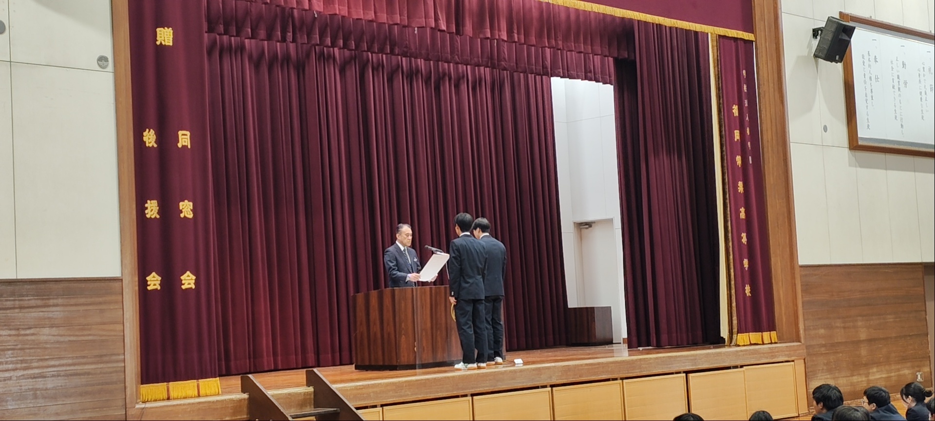 バドミントン部、サッカー部、簿記部、そして卓球部の表彰が行われました。