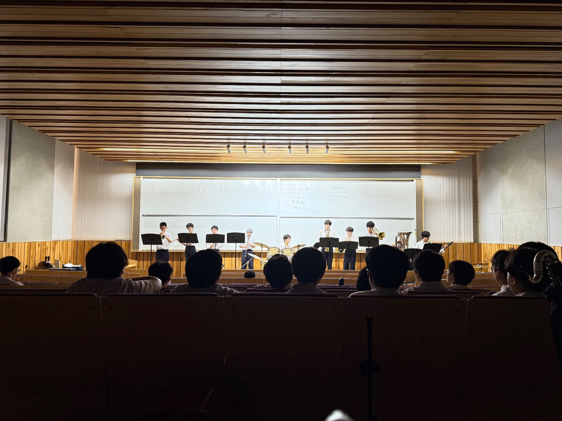 これまでの音楽経験は一切問いません。譜面なんて意味不明…という人でも大丈夫、この部活で1年過ごせば譜面が読めて楽器が吹ける人になれちゃいます。この部活でともに過ごす時間を積極的に作り、チームの一員として活躍するために頑張ってくれる人を募集しています。